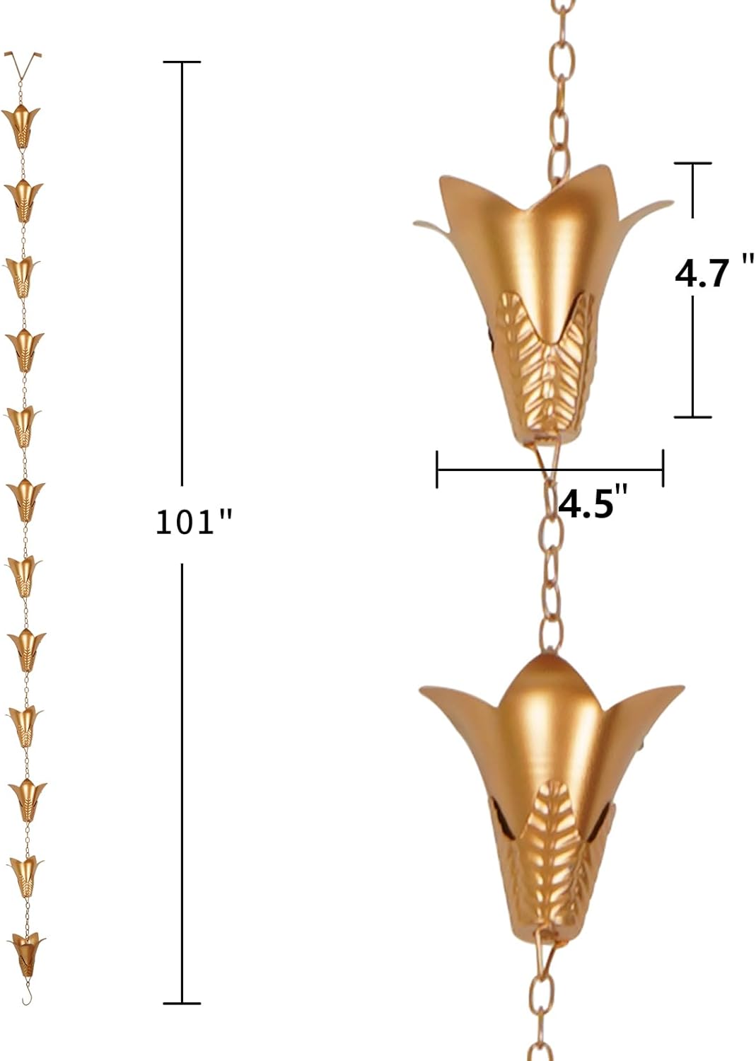 • 101" Long for Universal Fit. Include 12 cups. This rain chain combines decoration and function replacement of ugly rectangle downspout gutter