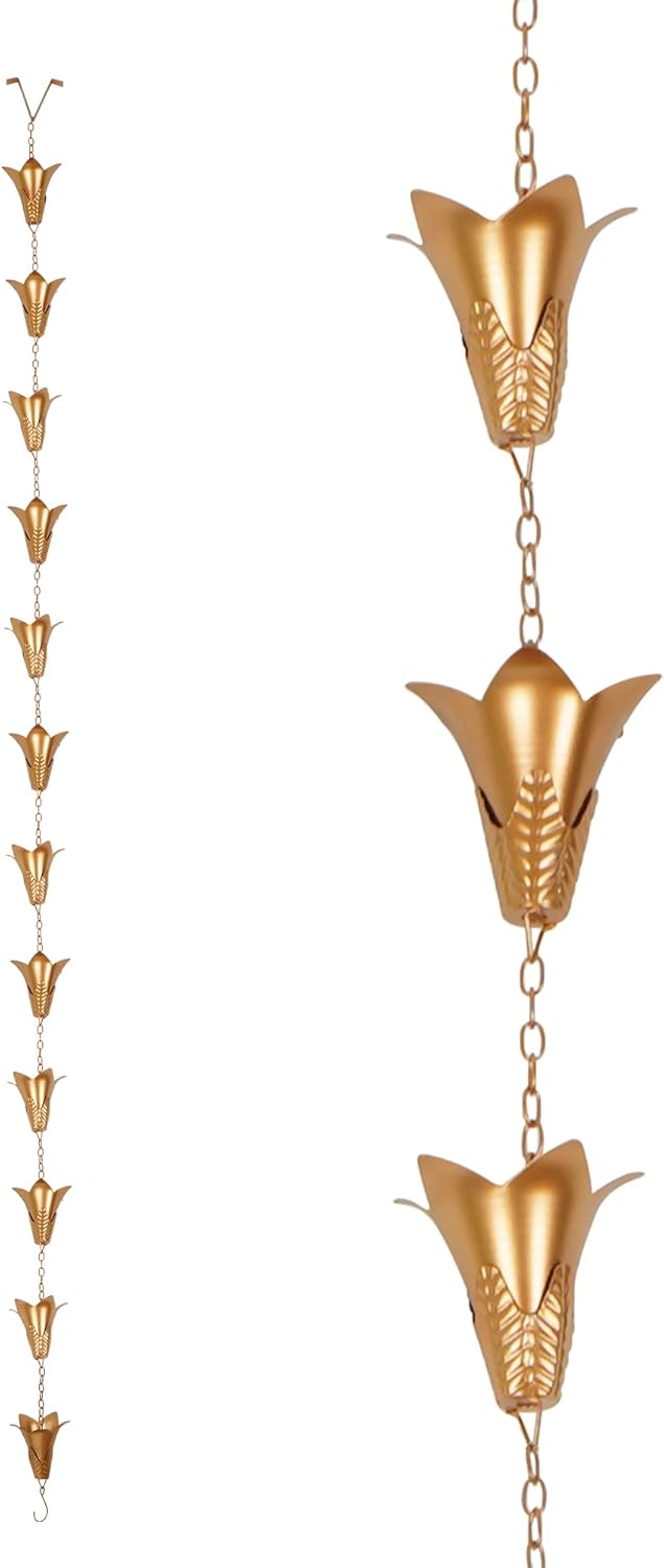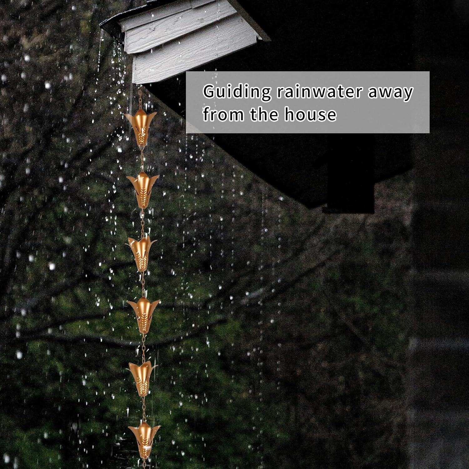 • Decorate Your House and Outdoor Garden with the Unique Rain Chain (Flower Shapes) Replace Gutter Downspout & Divert Water Away from Home for Stunning Fountain Display