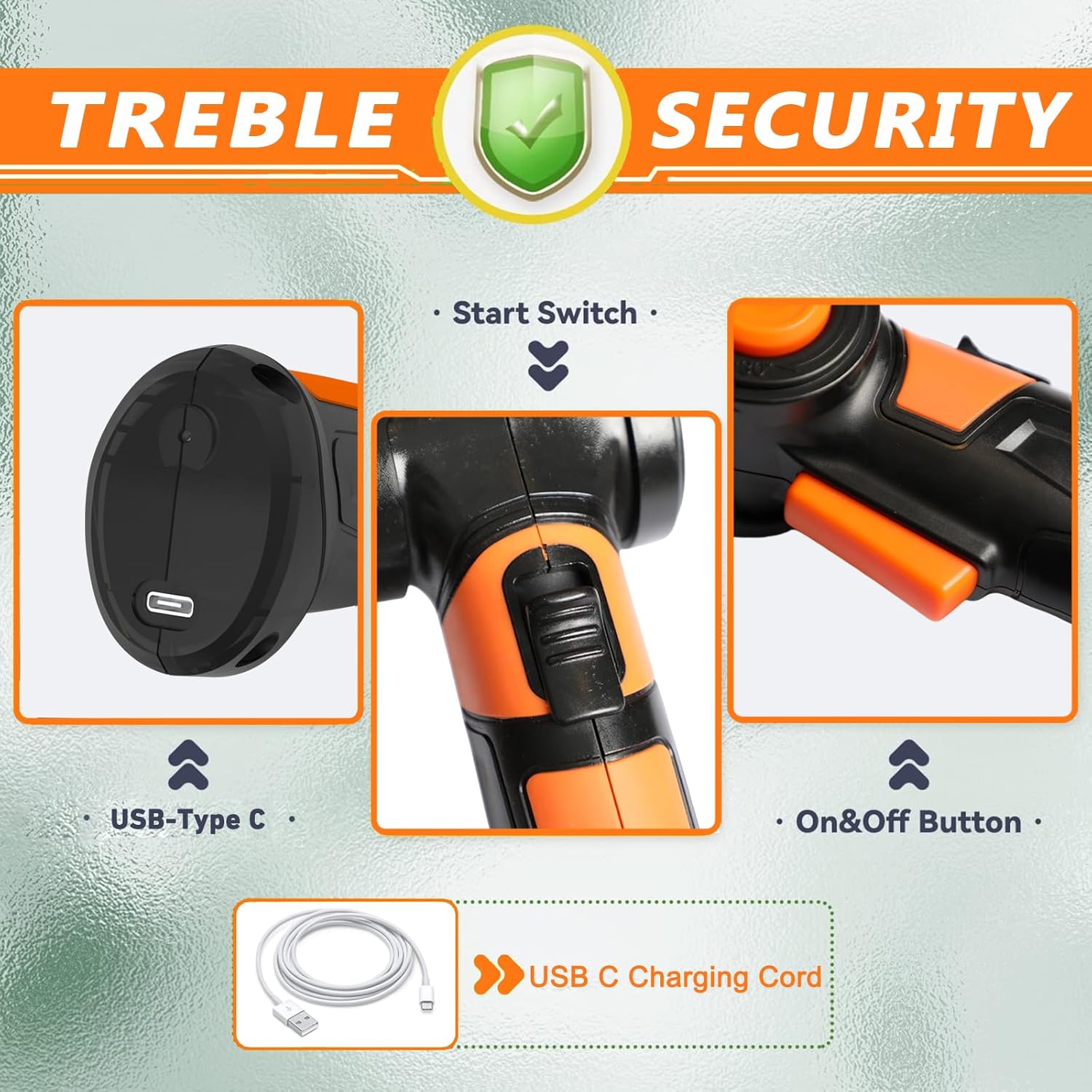 • 【Safety】The double lock design makes it safe enough. A small safety key has to be inserted first, then a button is pushed in and the trigger is used to start the grass trimmer. grass clippers.