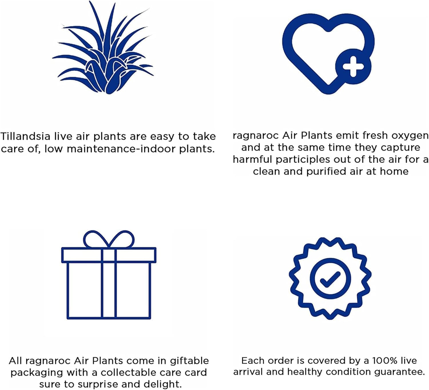 • Healthy plant arrival assurance: ragnaroc is committed to delivering vibrant and thriving air plants to your doorstep. Our live air plants are packed directly from Florida, and every order comes with a promise of their safe and healthy arrival. If, for any reason, you find yourself less than satisfied with our plants, please inform us, and we will promptly arrange a full refund or send you replacement plants.