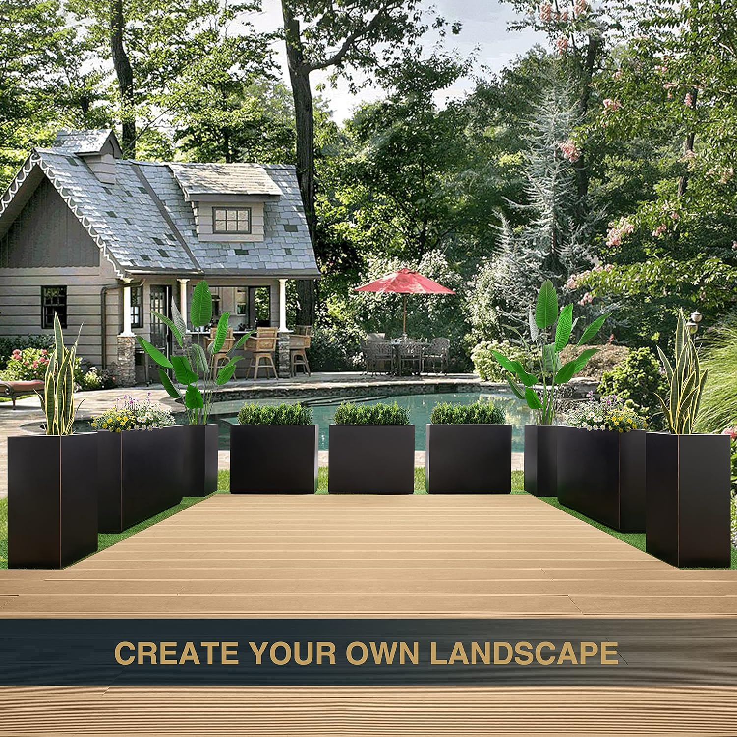 • 【Versatile Divider Design】Elevate your garden or outdoor space with this sleek, long rectangular planter. Its robust build not only enhances garden aesthetics but also serves as an elegant privacy divider for decks, patios, or entrances.