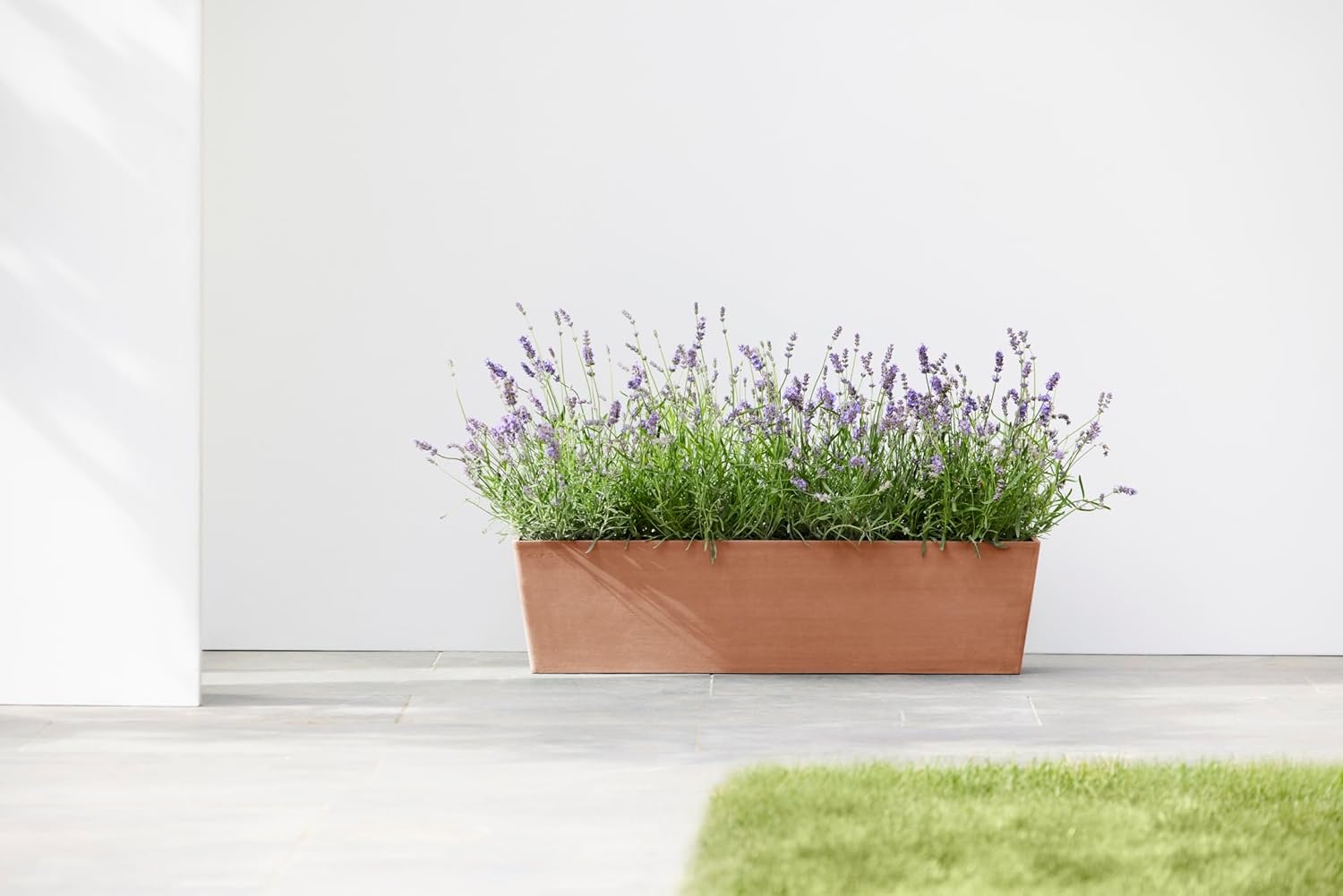 Ecopots Bruges Durable Modern Rectangular Indoor/Outdoor Recycled-Based Composite Flower Pot Planter, Terracotta Color, 31.5"