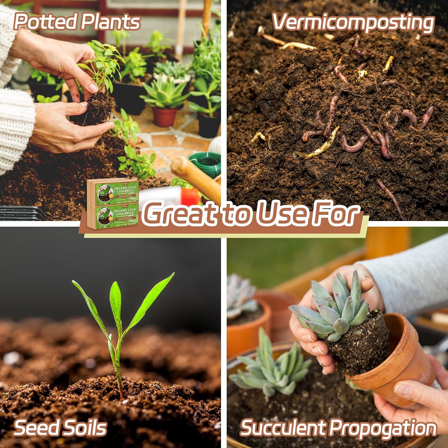 • Wide Application: For worms, garden and compost. Our coco bricks substrate works perfectly for seed germination; seedling nursery; potting mixes; micro greens; raised garden beds; landscaping and both indoor and outdoor gardening. These fluffy and brown coco coir pith soil blocks also perfect for vermicomposting and reptile bedding