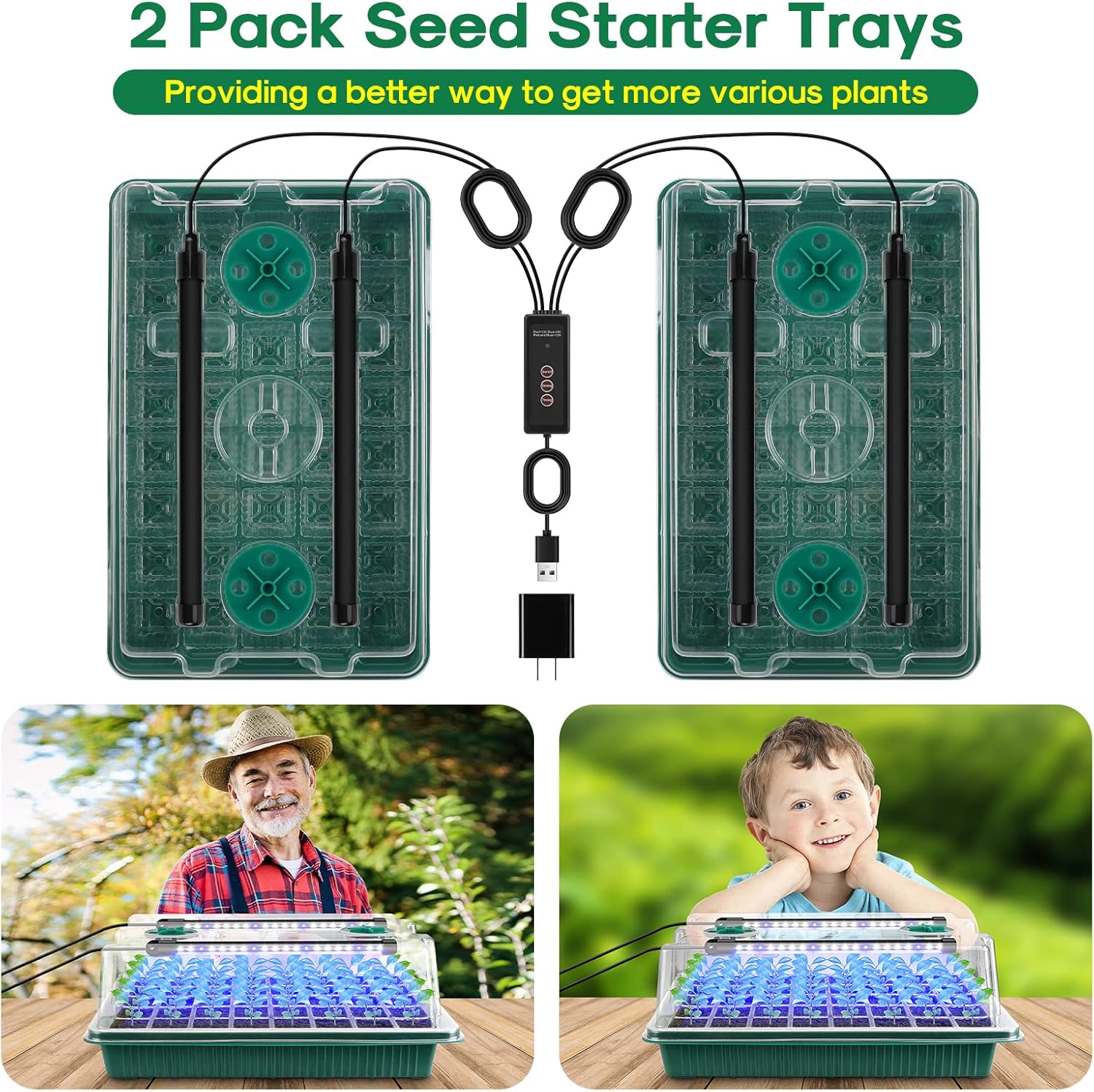 BlumWay Seed Starter Tray with Grow Light,2 Pack 80 Cells Seedling Tray Kit with Humidity Dome/Indoor Plant Starter Kit, Adjustable Brightness Plant Germination Trays