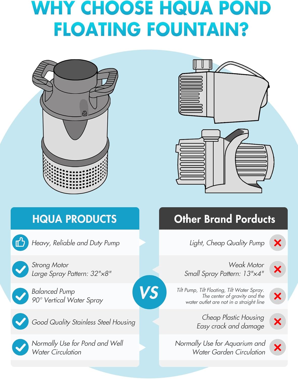 • Good Quality, Oil-free, Maintenance-free Stainless Steel 1/2 HP Pump, Reliable, Durable and Anti-Corrosion, 13000 GPH High Flow.