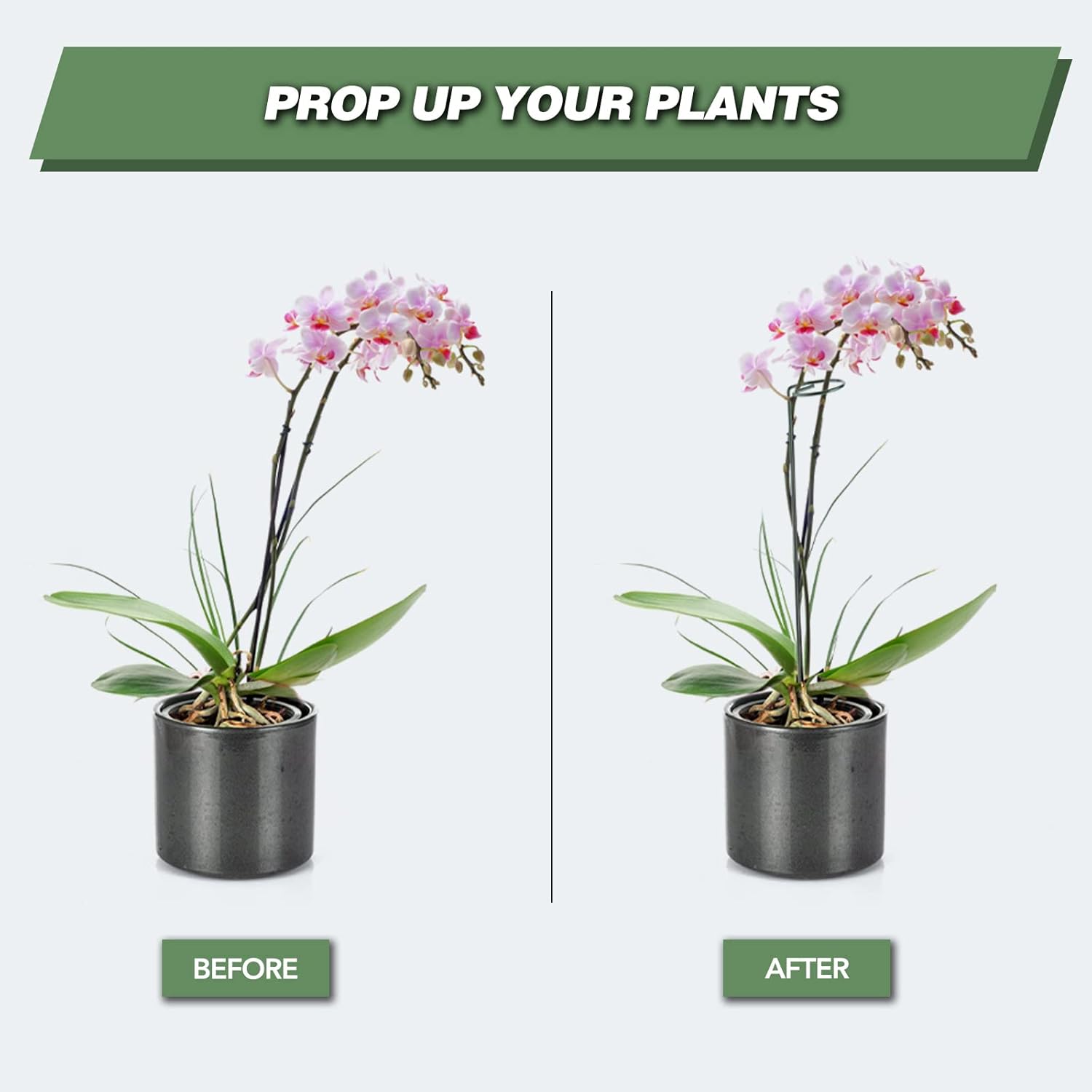 • Plant Stakes With Rings: The uniquely designed support ring of the flower stakes can well secure the stems of the plant. The plant support stake will not affect the growth of plant stems. With this plant stake plants will not be injured by binding.
