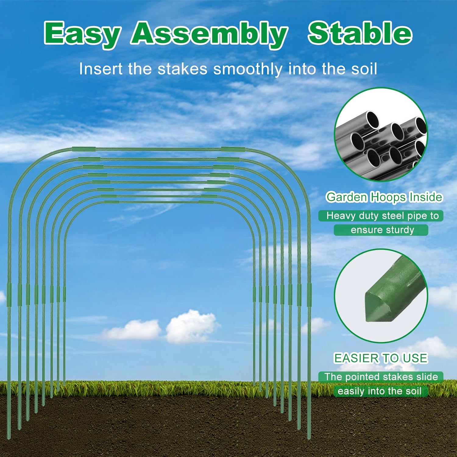 • 🌱【Greenhouse Hoops for Raised Beds 】highydroLED Garden Hoops for DIY can be used with insect-proof nets, shading nets, insulation film, etc. Design for plant cover, frost protection cover, mini-greenhouse, and raised bed, provides an ideal environment for rapid germination and growth of young plants.