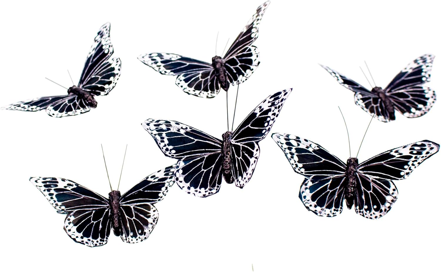 YCHTEWY- Feather Butterfly Decoration Set of 12 pcs Black Butterflies Party Decorations Halloween Decoration Home Decoration