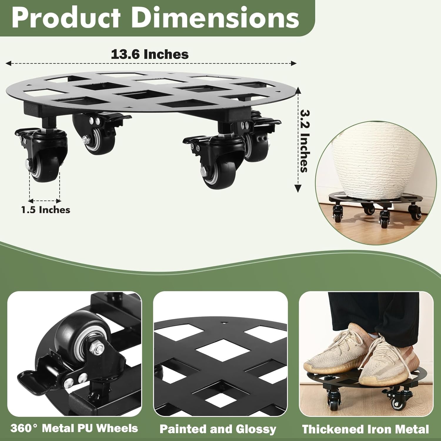 • Keep the Floor Clean: With 1 packs of clear plastic plant saucers, they can catch the water and prevent getting wet when watering. The metal rolling plant caddy will help keep a clean floor and avoid water stains.