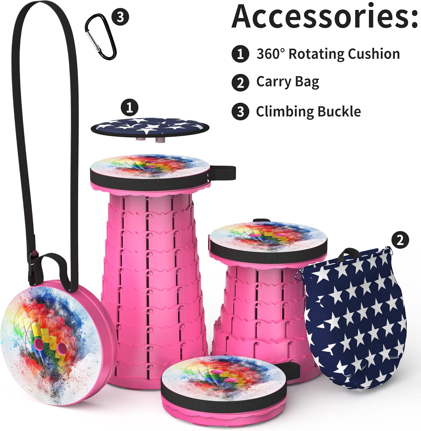 ALEVMOOM Upgraded Telescoping Collapsible Stool with Cushion, Folding Stool with Printing Portable Retractable Foldable Seat Max Load 550lbs for Adults Camping Fishing Outdoor