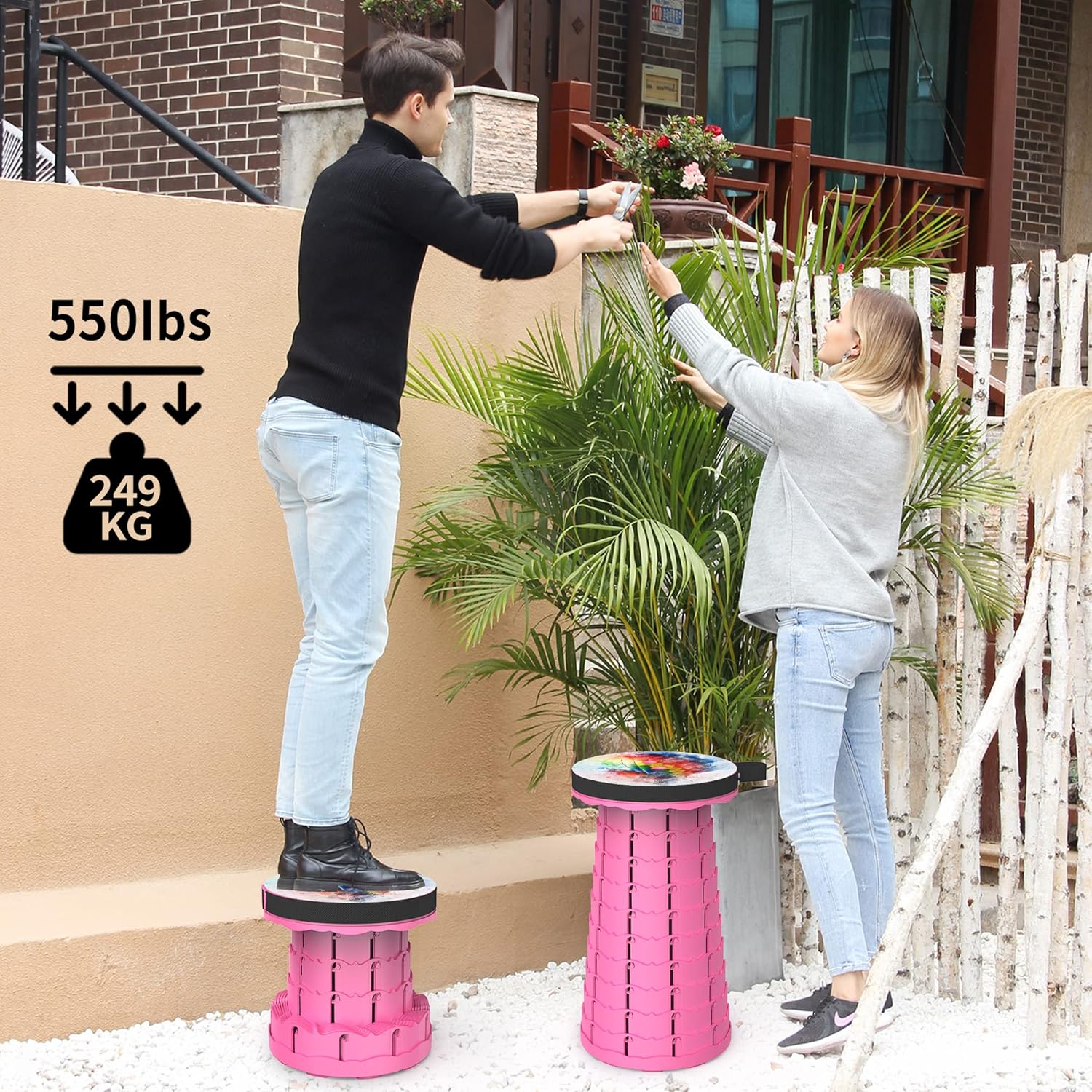 • 【SIZED TO SUIT EVERYONE】Enjoy a Sturdier, Stronger, Lighter-Weight Retractable Folding Stool that has wide-ranging potential. This folding stool is small and lightweight (only 2.2 pounds). Fully collapsed, your Portable Collapsible Stool is just 25*25*6.5 cm when closed, but will expand up to 45 cm tall or to your desired height whenever you're ready to take a seat.