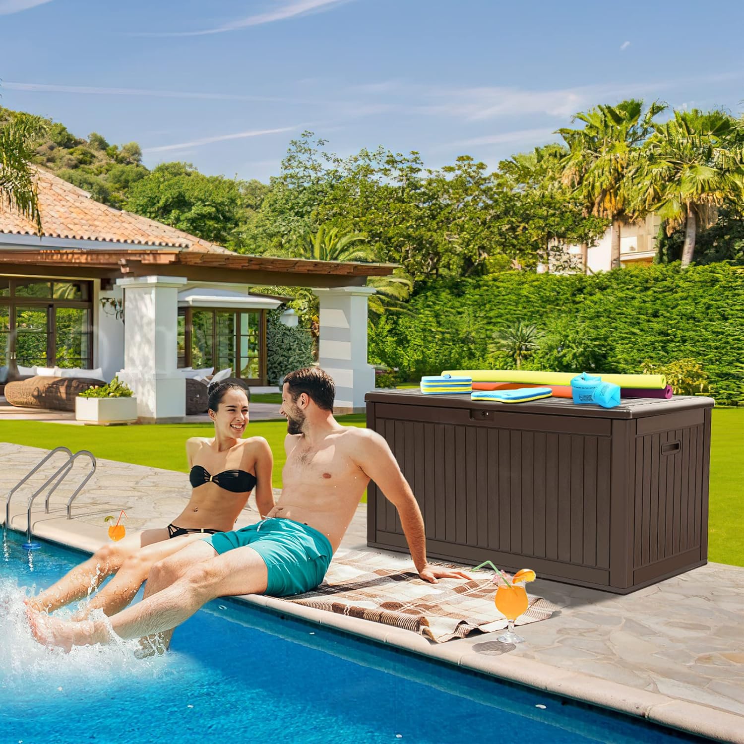 • MULTIPURPOSE GARDEN STORAGE:Doubles as an extra table or bench to accommodate six adults of up to 1000lbs., this deck box blends into any yard or patio while storing patio cushions, gardening tools, pool supplies, etc
