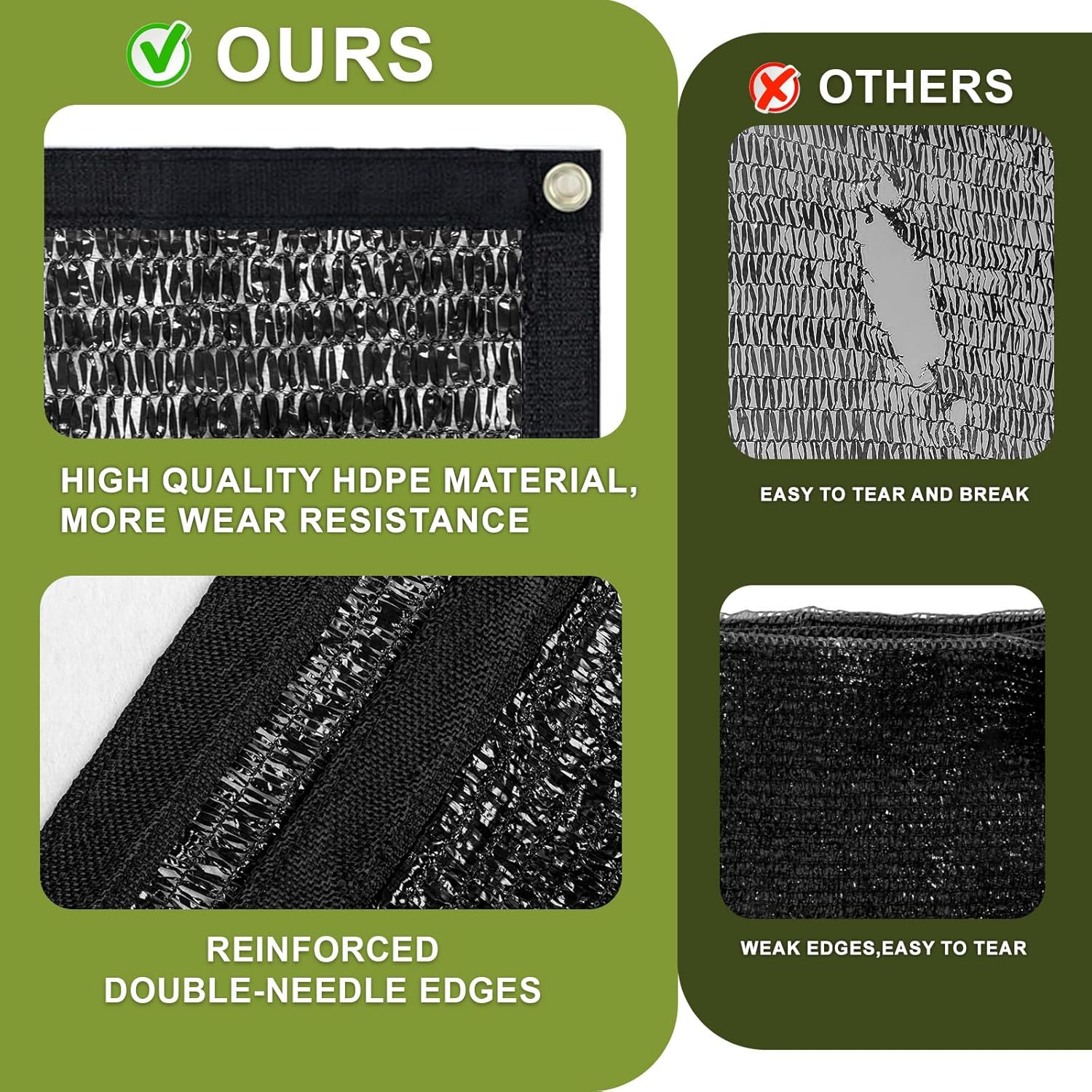 • 【High Quality】Made of 100% high-density polyethylene fabric, this garden shade cloth is excellent for anti-aging and can last for 2-3 years. The mesh is lightweight, durable and breathable, making it a perfect plant cover and summer shading option. Please note that due to the characteristics of this material, there may be a tolerance of ±4 inches from edge to edge
