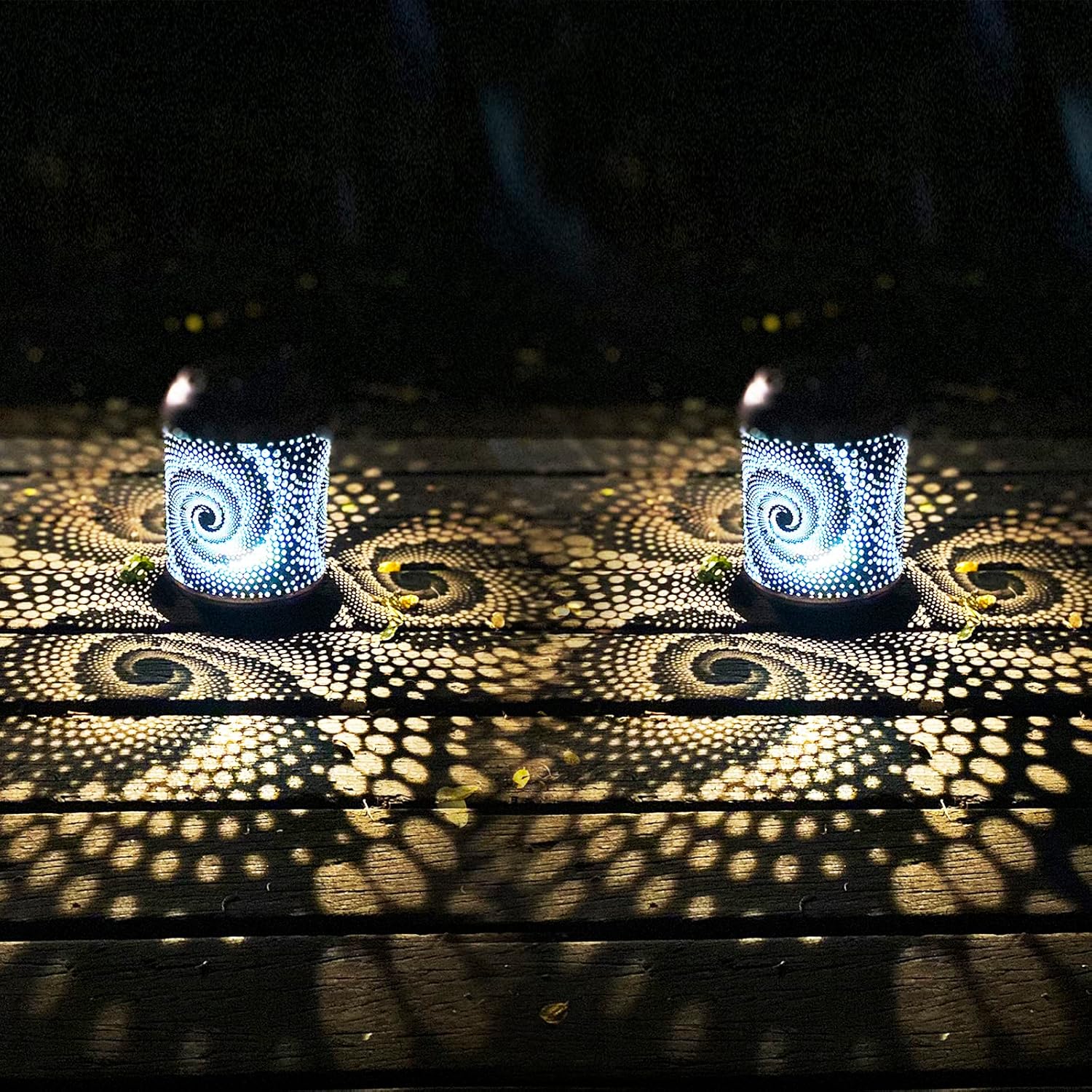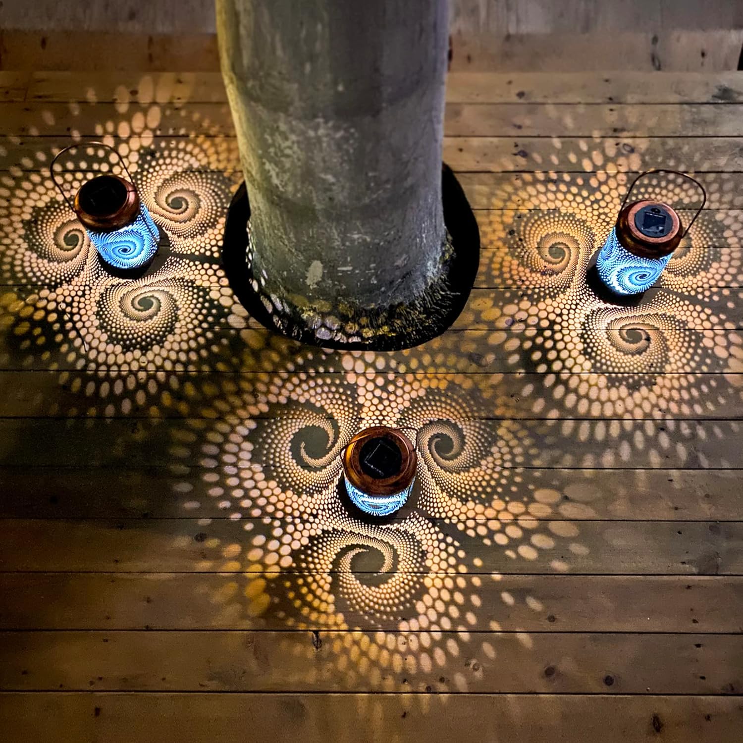 • Gorgeous & Cool Garden Decor: This outdoor lantern has an innovative design that keeps with modern trends. The exterior is pure black with a cool spiral pattern, combined with a cold blue coating inside. In the night, this lantern casting dynamic blue light that is full of technology shadow.