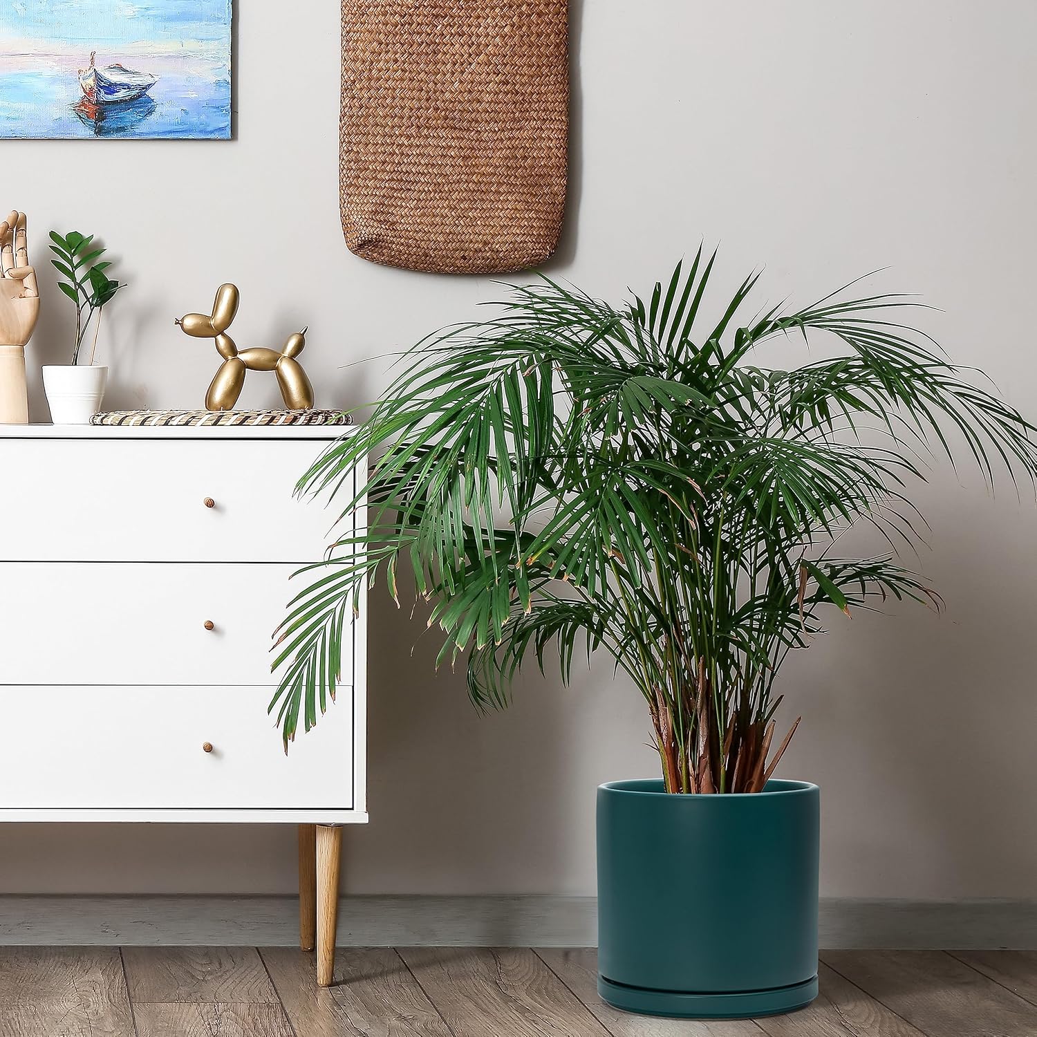 D'vine Dev 10 Inch Ceramic Planter Pot with Drainage Hole and Saucer, Indoor Cylinder Round Planter Pot, Teal, 94-O-E-9