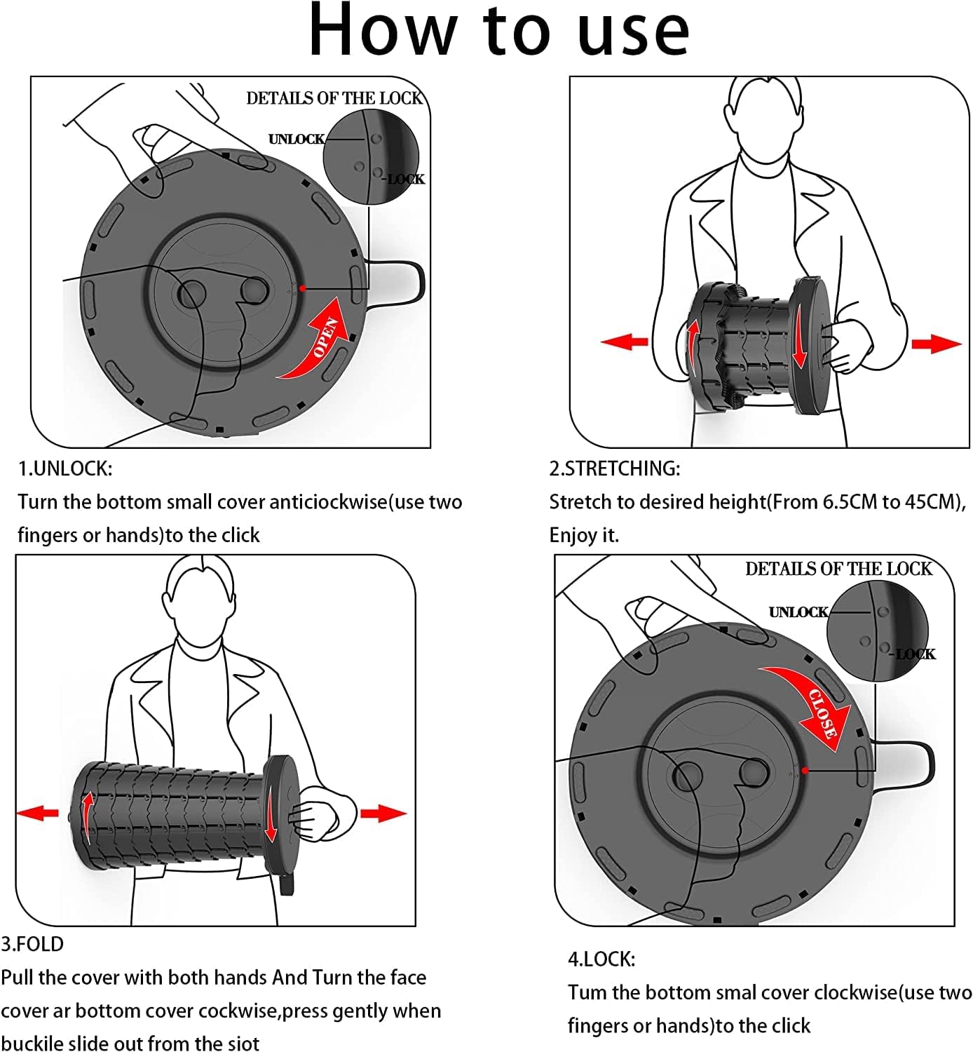 • 【ADJUSTABlE HEIGHT】 This Portable Stool can be adjusted to your desired height within the range of 2.4 to 17.71 inches. This makes it suitable for most adults to use anywhere!