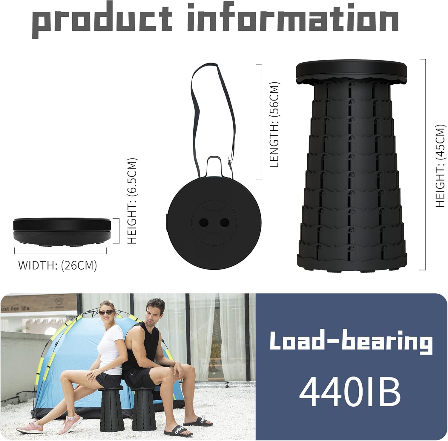 • 【SAFE and STABLE】 Made of environmentally friendly materials, cylindrical structure, tight connection buckles and non-slip base to ensure the stability of the folding stool, providing a safe and comfortable environment for sitting. The maximum load capacity is up to 440 pounds! It's a ideal choice both indoors and outdoors.