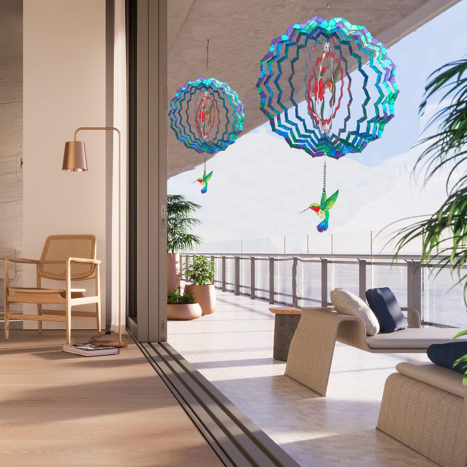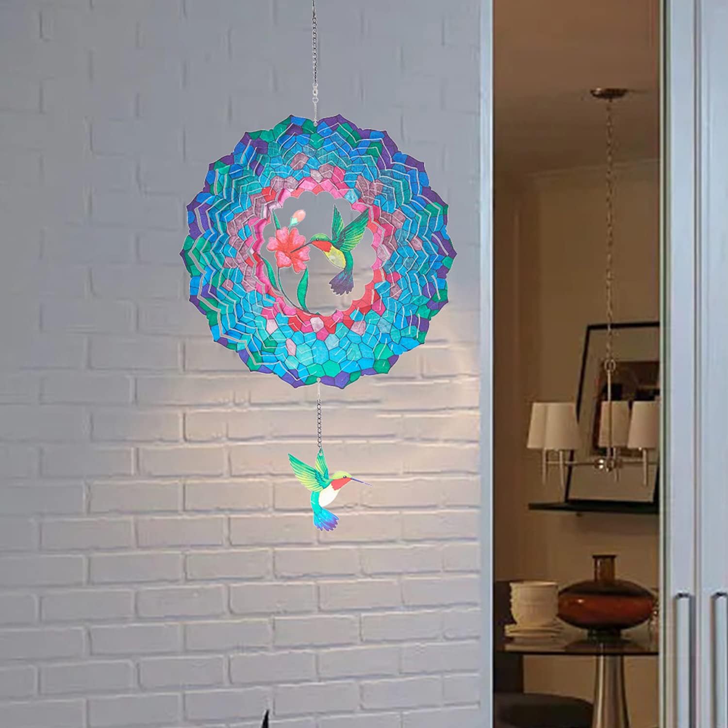 • EYE CATCHING DECORATIONS - The 12 inch hummingbird wind spinner is the right size to decorate your patio, gallery, porch, bedroom, living room, lawn, garden, balcony, yard, and trees. Suitable for indoor and outdoor use. A great addition to your home decor.