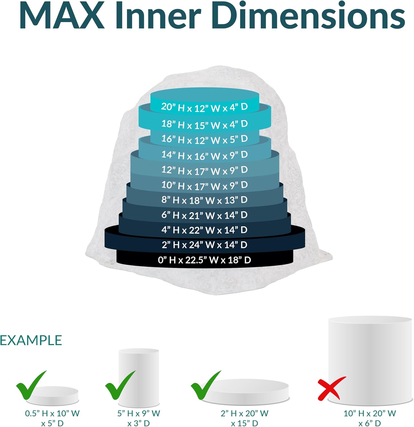 • COVERS WELLS, SEPTIC TANKS, AND MORE: Use this artificial landscape rock to cover unsightly objects in the yard or hide a spare key discreetly. The artificial boulder measures 24.5" W x 21" D x 21.5" H and weighs 5.2 lbs. The stakes included with the rock measure 1" W x 12" H each.