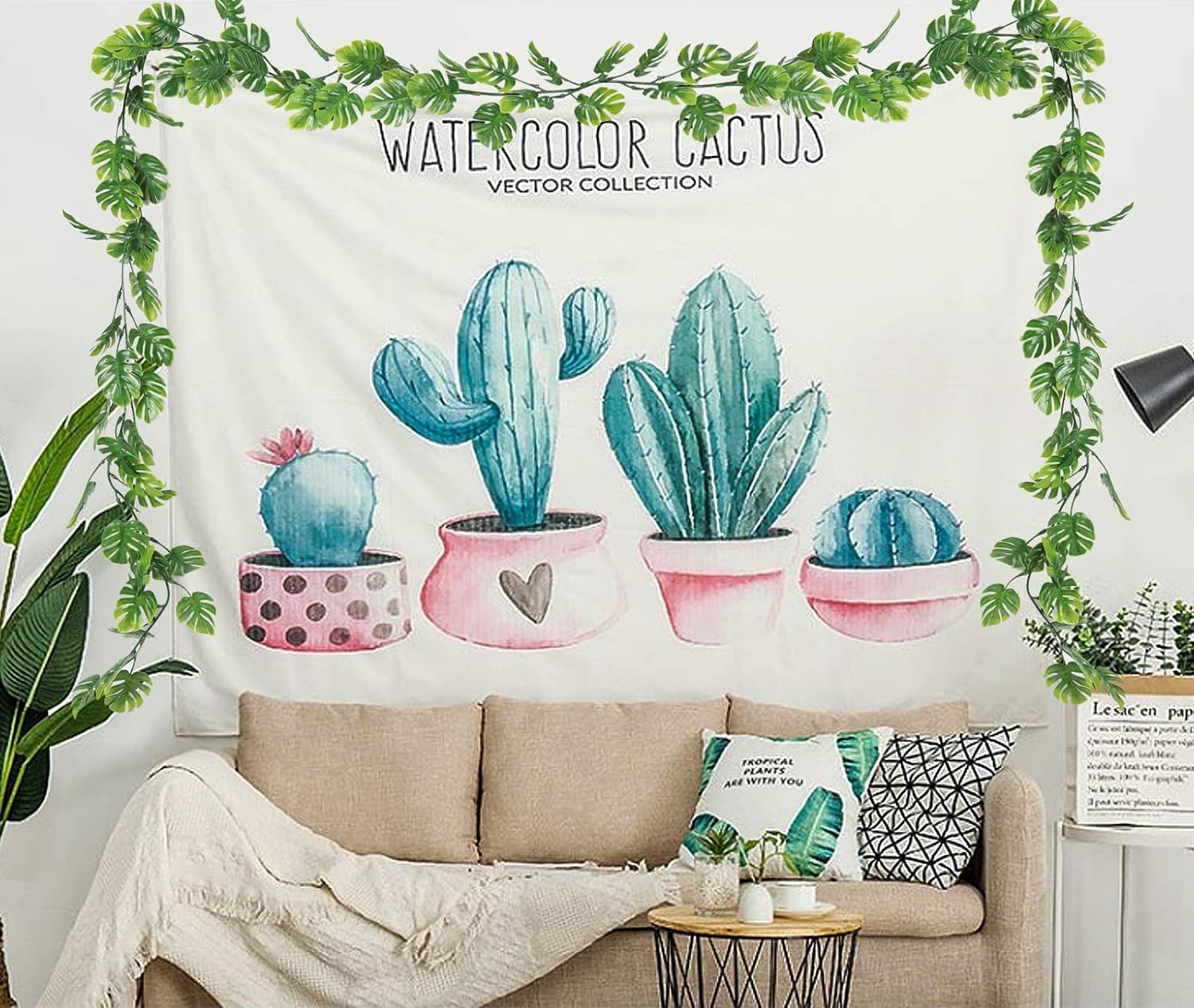 • Size & Packaging:Packag includes: 3 packs of artificial hanging plants and 6 hooks. Each monstera vine is 5.9 ft/180cm long and each monstera leaf appr. 3.2"x 2.16"(LxW), about 69 fake monstera leaves per Monstera Leaf Vine. Each monstera vine is equipped with 2 hooks.NOTE:Due to packaging and transportation, the leaves maybe dropped, you can insert the leaves back after opening the rattan