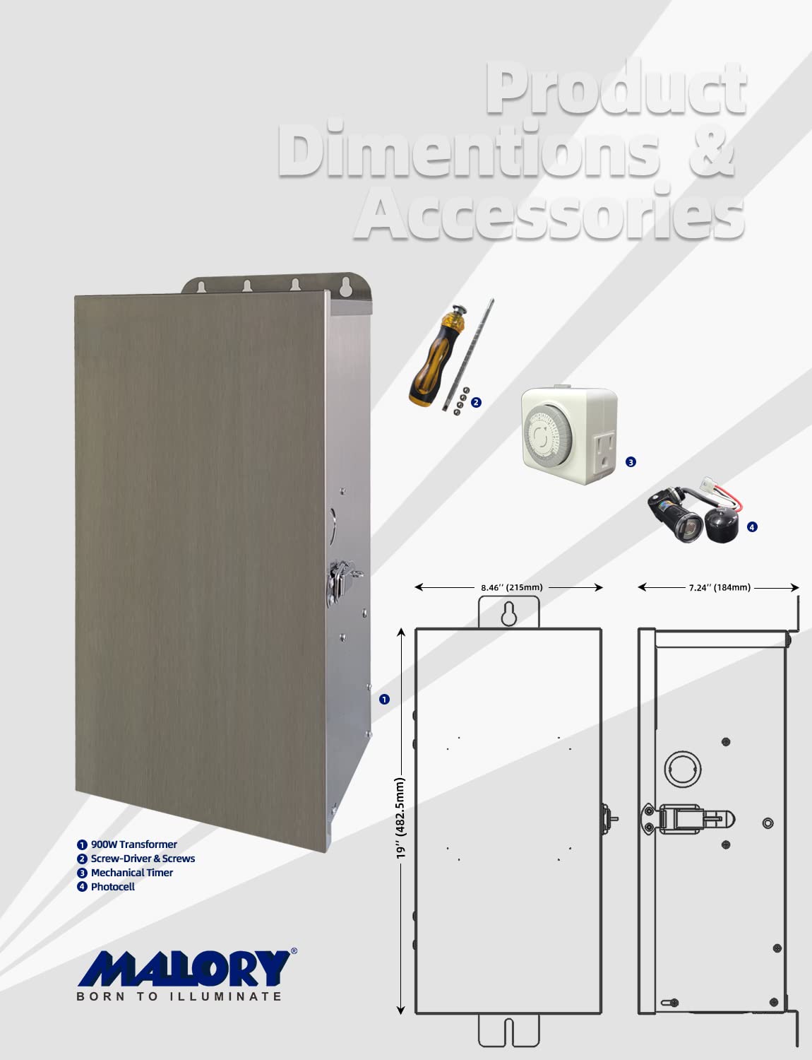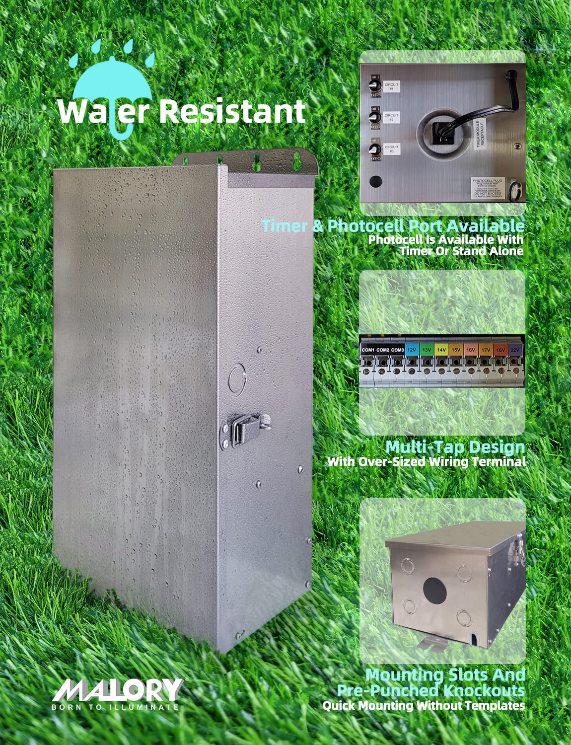 MALORY 900W Low Voltage Transformer with Timer & Photocell for Landscape Lighting,(19''H) 120V AC to 12/13/14/15/16/17/18/22V Multi-Tap Power Supply for Outdoor Landscape Lights,Yard Garden Lights