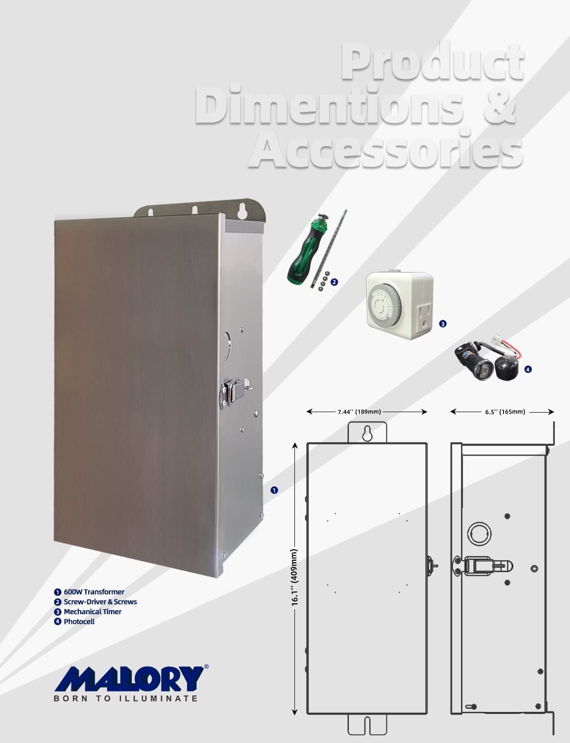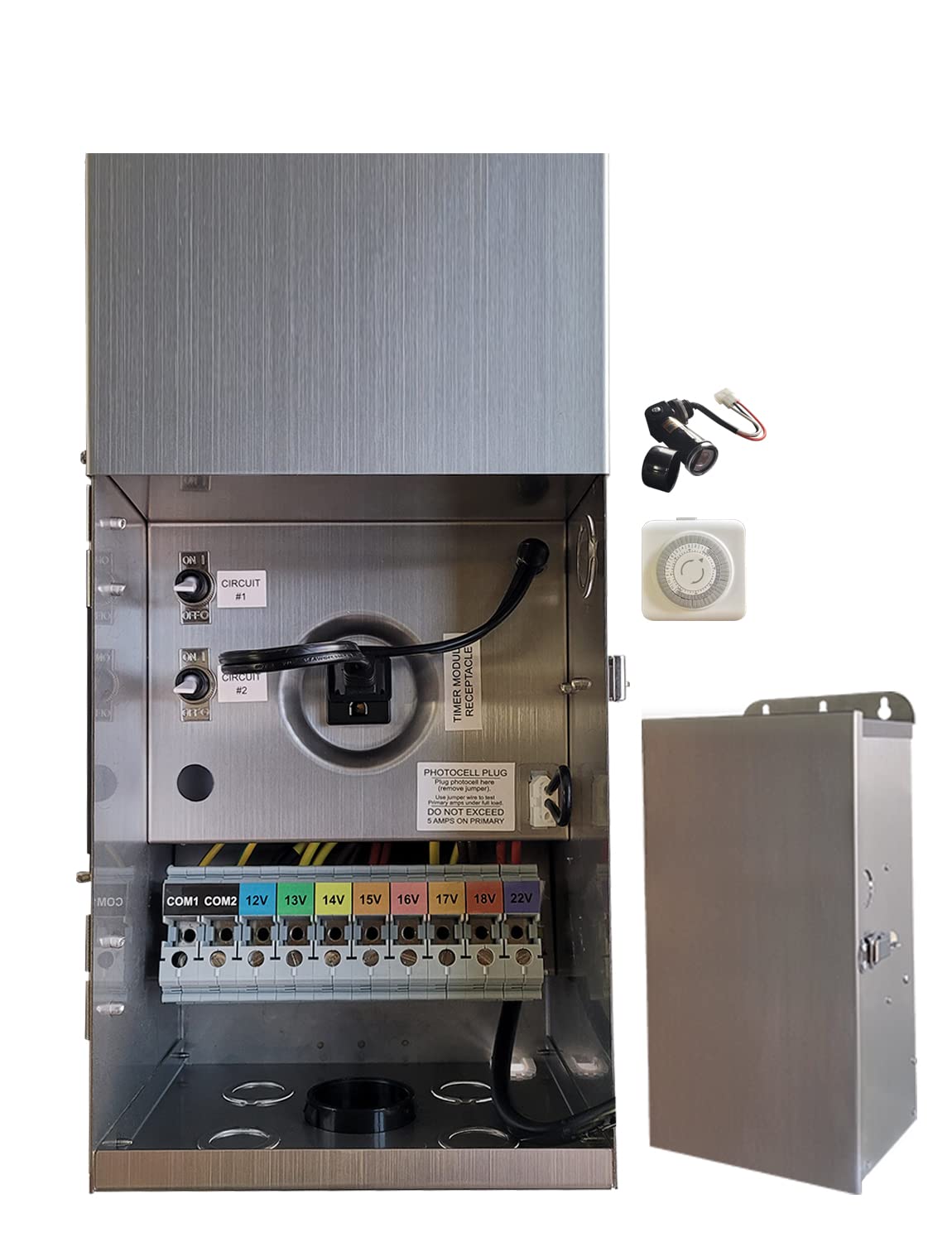 • 16 inch Work with Timer & Sensor:Timer & photocell port available,packge with mechanical timer and photocell sensor for sensing and timing functions. You also can connect the transformer in your smart plug remote control it.The transformer size is 16*7*6inch and weight is 24LB.