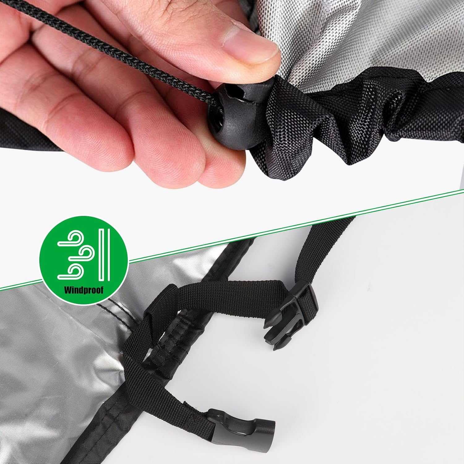 • Windproof: There is an adjustable drawstring and two velcros at the bottom of cover, which fits closely to the furniture to prevent the cover from being blown away by strong winds.