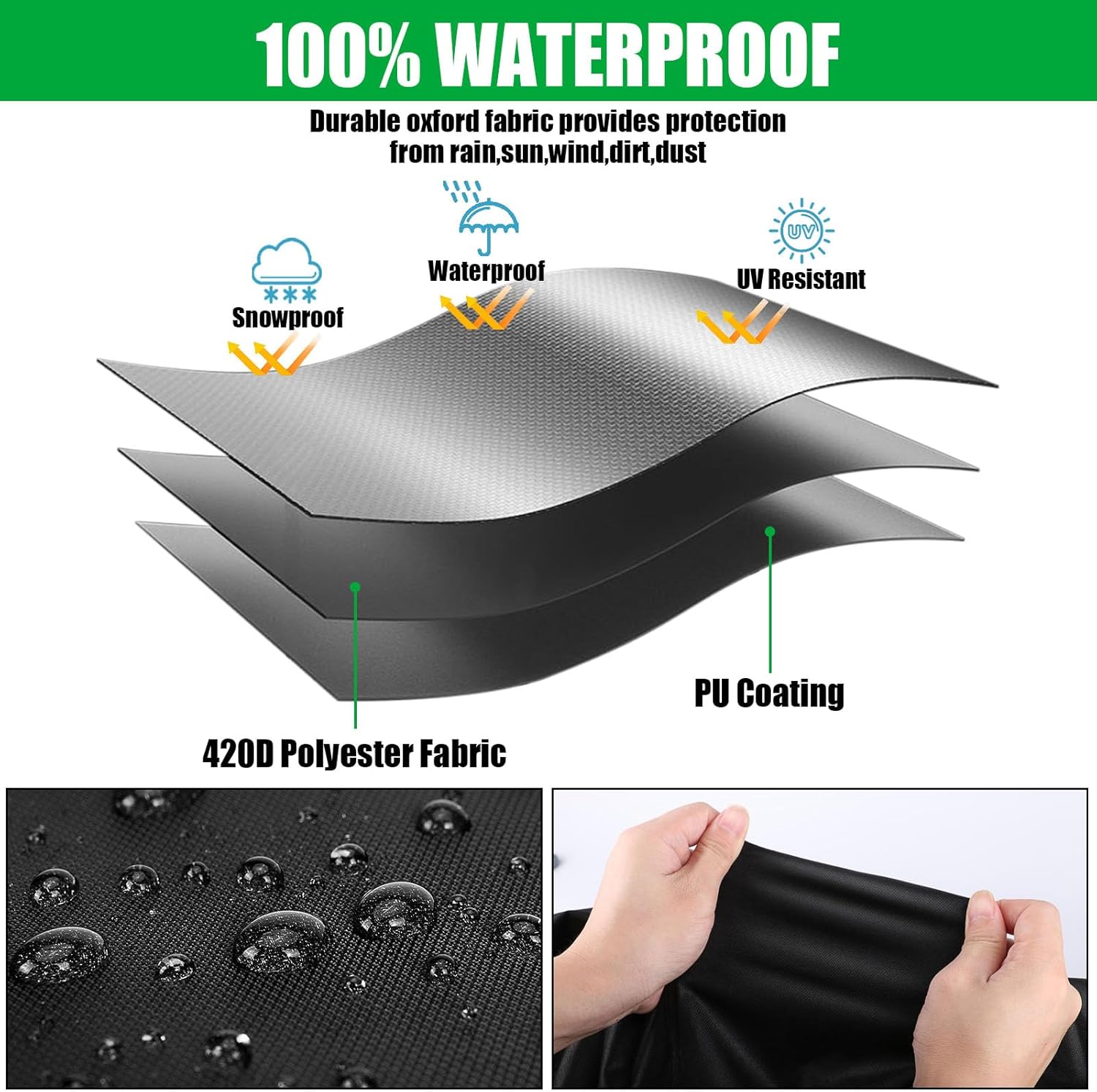 • Premium Materials: The patio furniture cover is made of durable oxford fabric, which is tear-resistant and can well protect your furniture from dust, rain and sun.