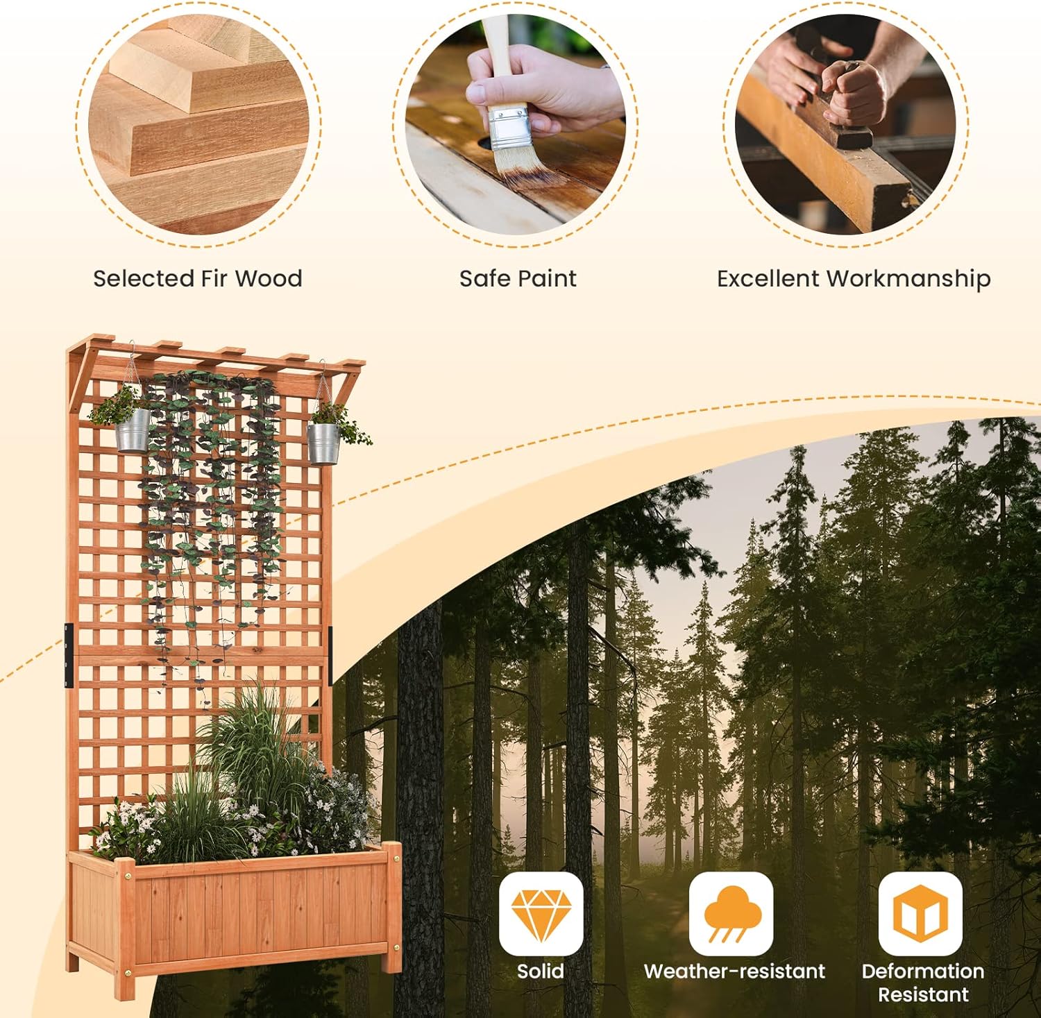 • [Trellis & Extended Roof]: Designed with tall trellis and extended roof, the planter box with trellis provides sufficient space to grow climbing plants, hang basket plants and display decorations. Therefore, it will promotes healthy growth of plants and yard beautification.