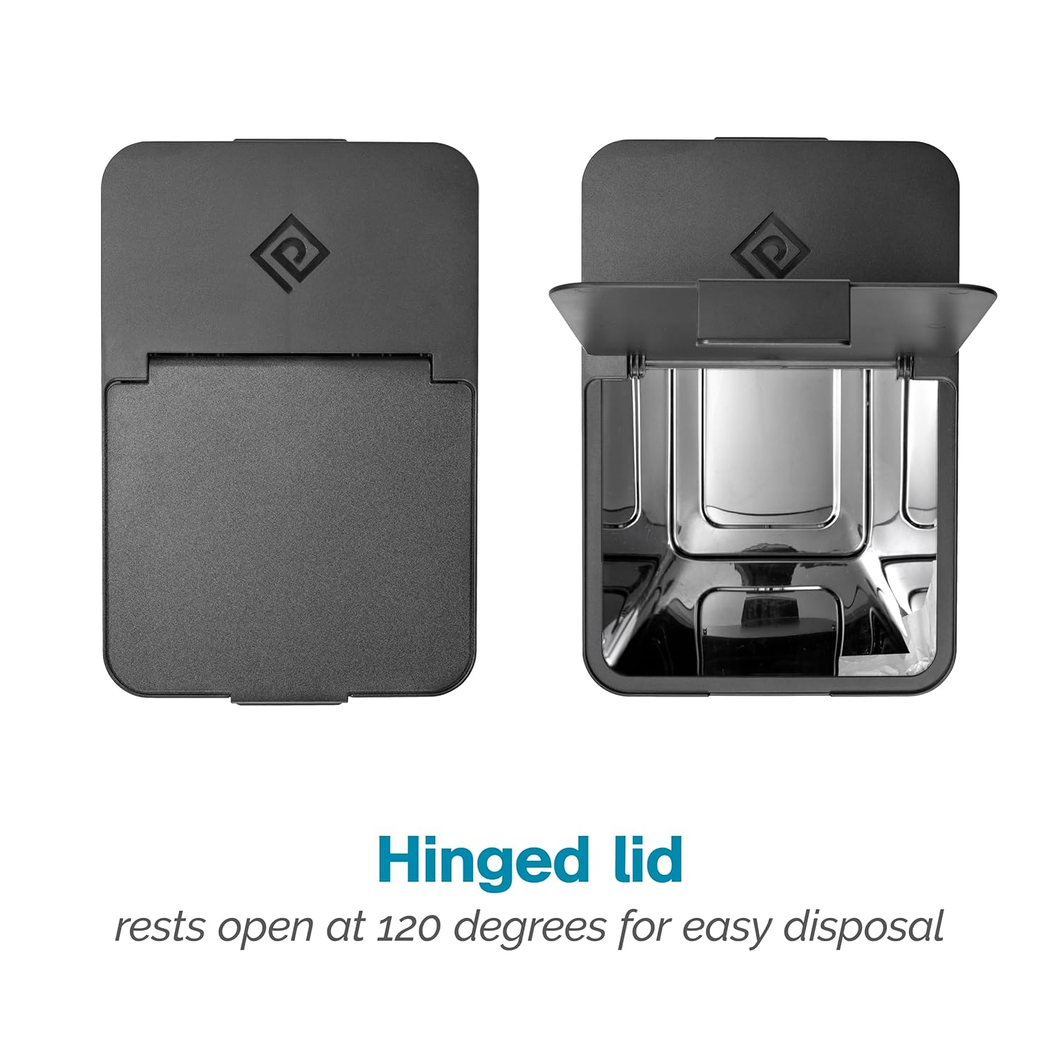 • REMOVABLE HINGED-LID rests open at 120 degrees for easy disposal