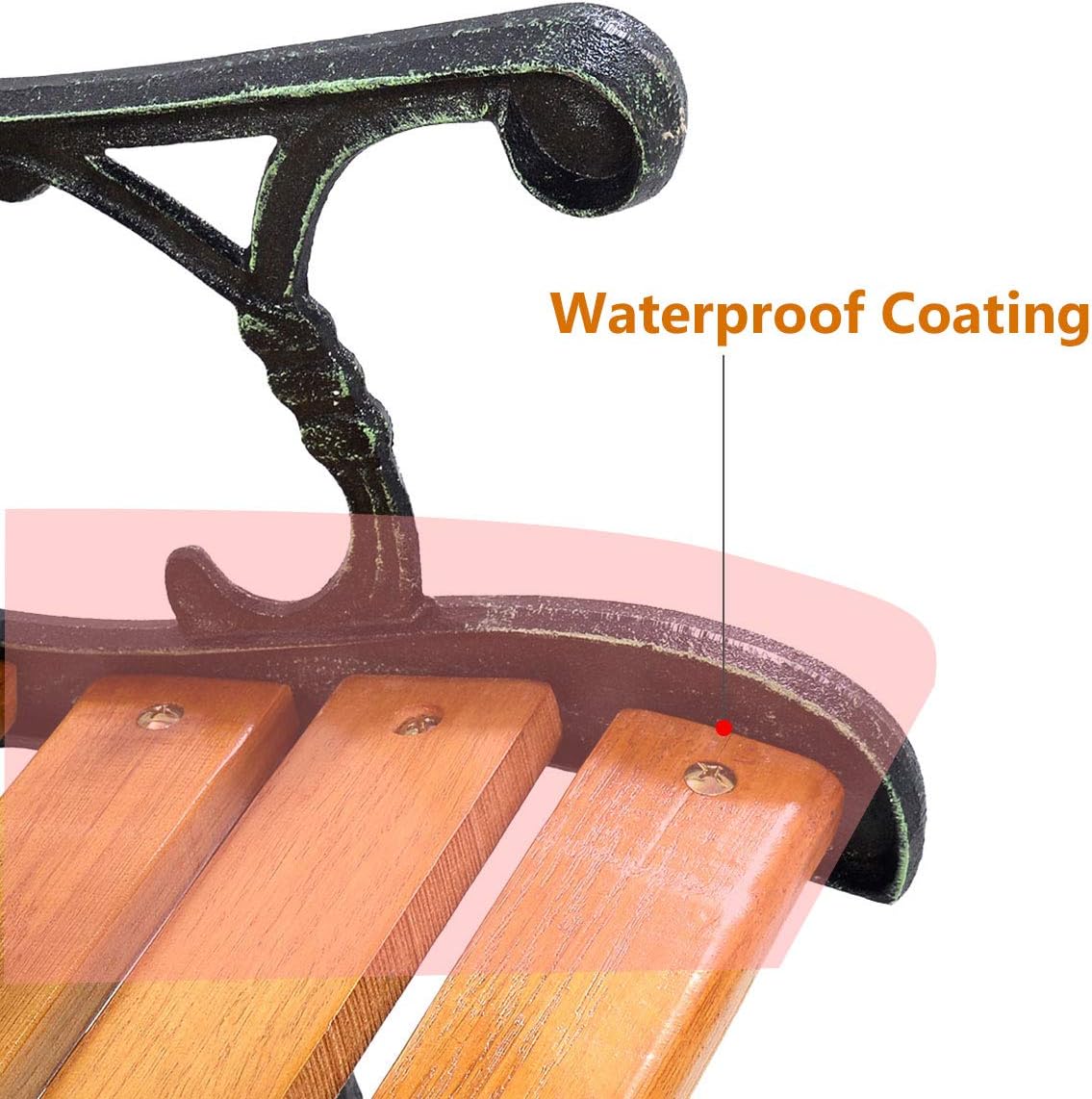 • ⛅【Sturdy & Durable Material】 The outdoor patio bench are made of well painted cast iron structure, solid wood seat and backrest frame, making them strong and durable, with a strong bearing capacity of 470 lbs.
