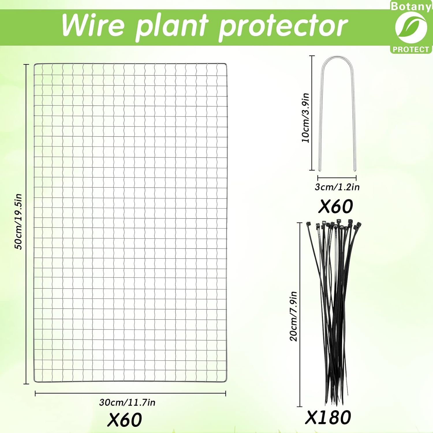 • Easy to Install: when you receive our plant protector, it is convenient for you to install, every 4 pieces of wire plant protectors can be assembled into a cage, and the provided nylon tie can firmly fix them together, then you can use U nails to fix them on the ground to improve stability, which will not spare you too much time