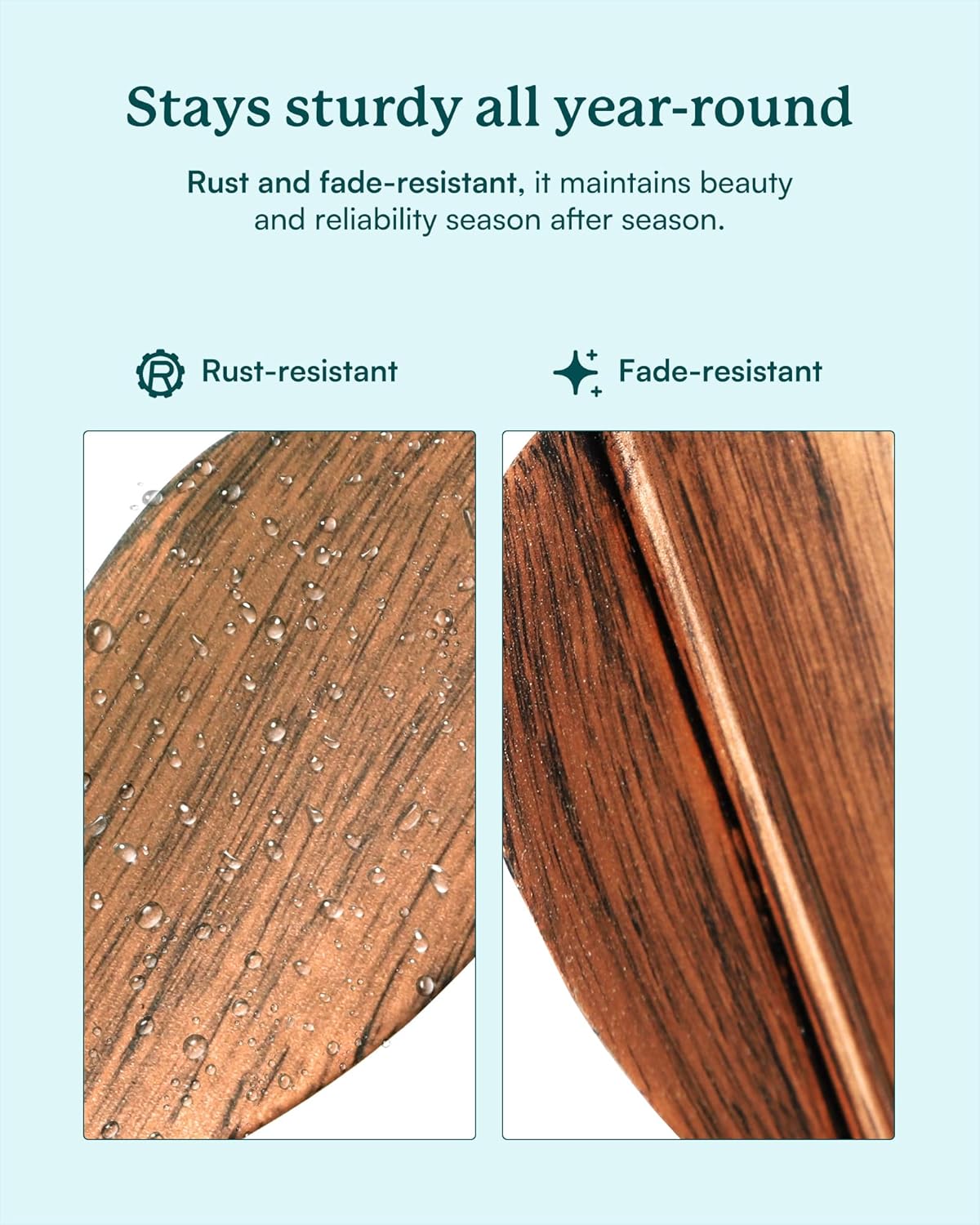 • CLASSIC OUTDOOR METAL DECOR: Made of sturdy metal with protective coating finishes. UV, RUST, and FADE RESISTANT. The all-season decorative spinner can be cleaned easily to keep its reflective shine and rustic appearance. Long-lasting use.