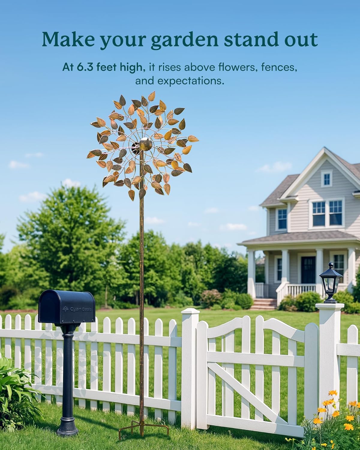 Yard Garden Wind Spinners - Large Wind Spinners Outdoor Metal, Kinetic Lawn Patio Wind Sculptures Windmill Decor (Copper Leaves, W23 x H84)