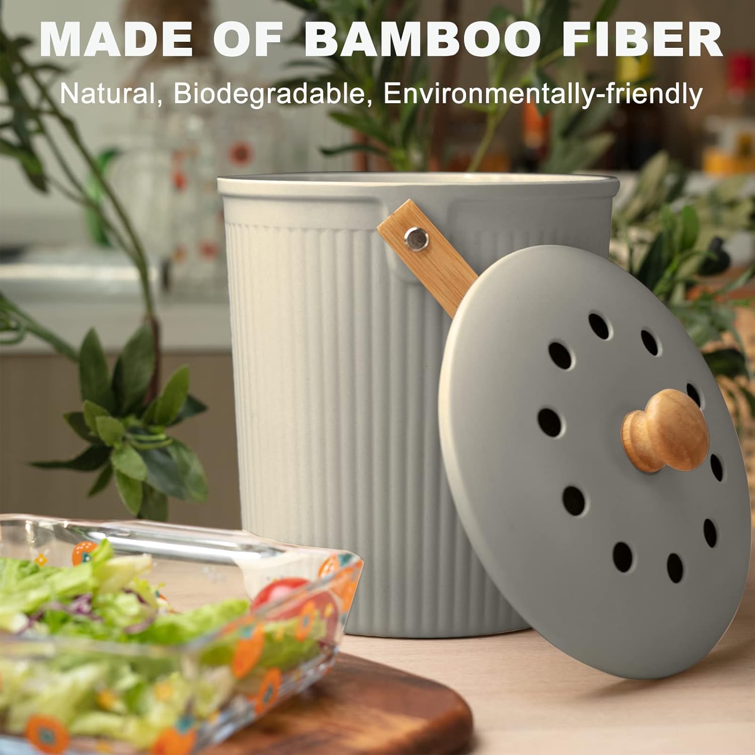 • All Natural: Made from earth-friendly recycled materials including Bamboo Fiber, Corn Starch, the compost bin kitchen counter with lid in itself is biodegradable.