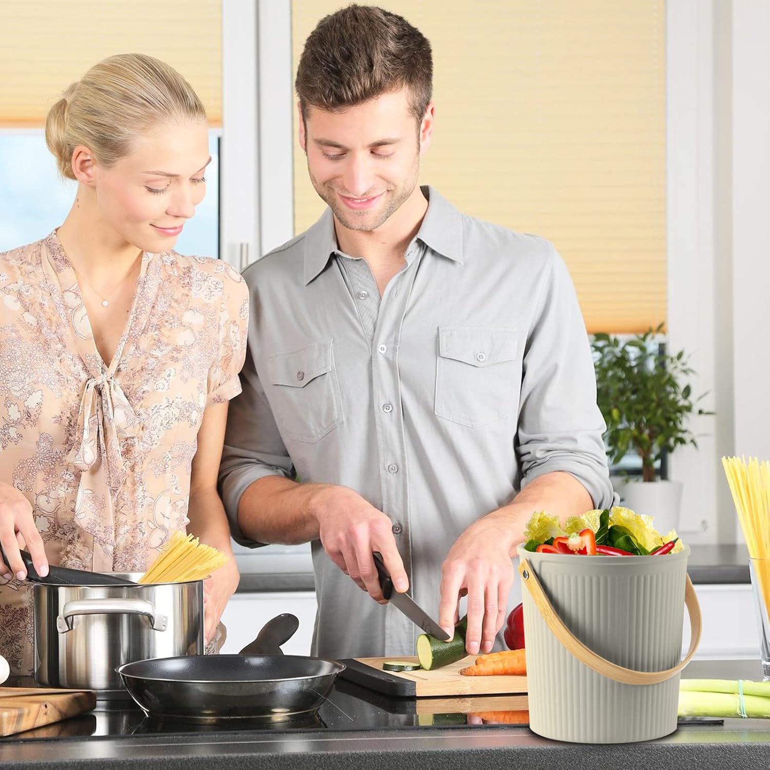 • Stylish: The modern and elegant design of the counter top compost bin for kitchen makes it sit pretty on your countertop to collect peels, ends and other scraps. It's Dishwasher safe.