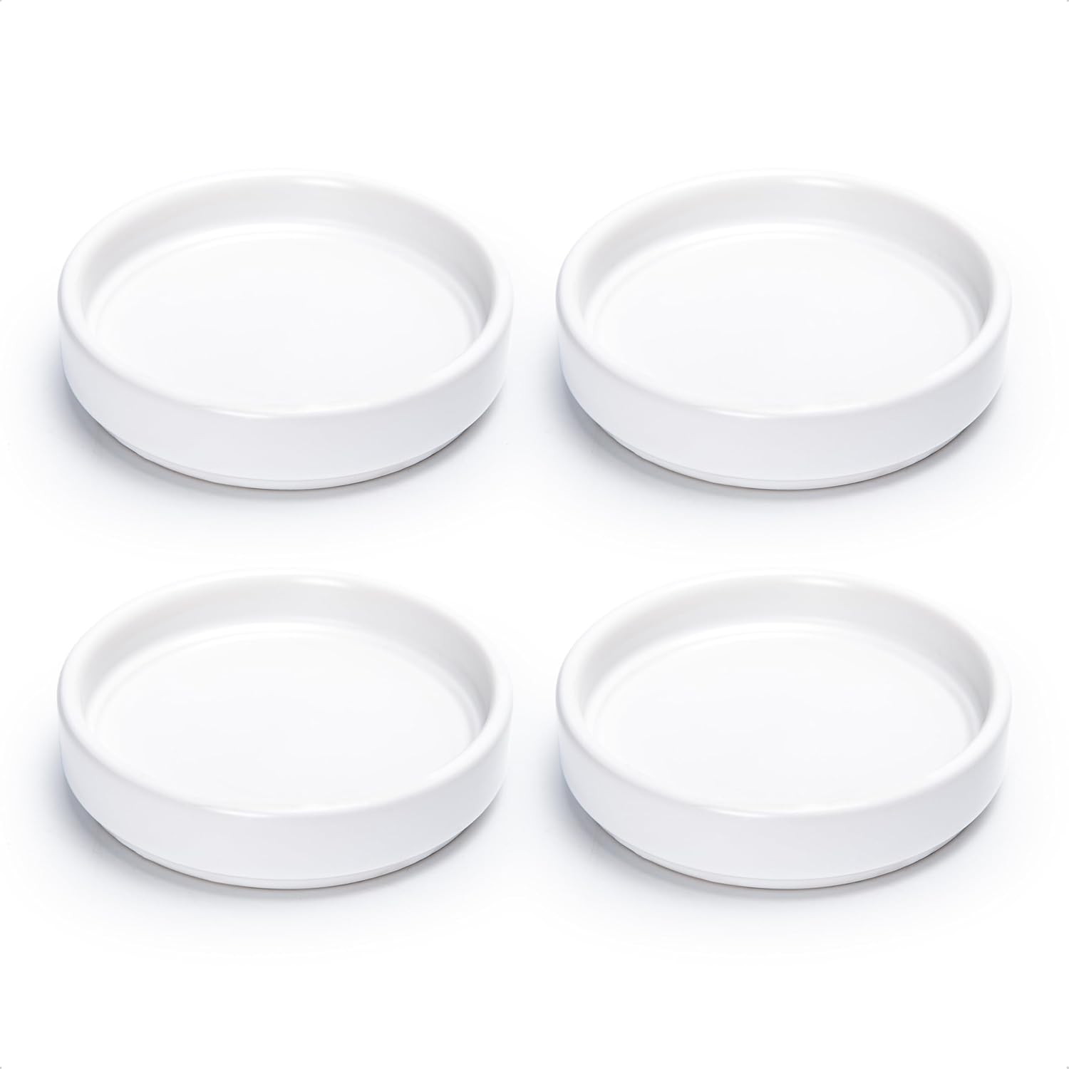 D'vine Dev Modern Round 3.7 Inch Ceramic Plant Pot Saucer, Planter Pot Drainage Tray for Indoor Plants, Set of 4, Matte White, 97-T-A-11