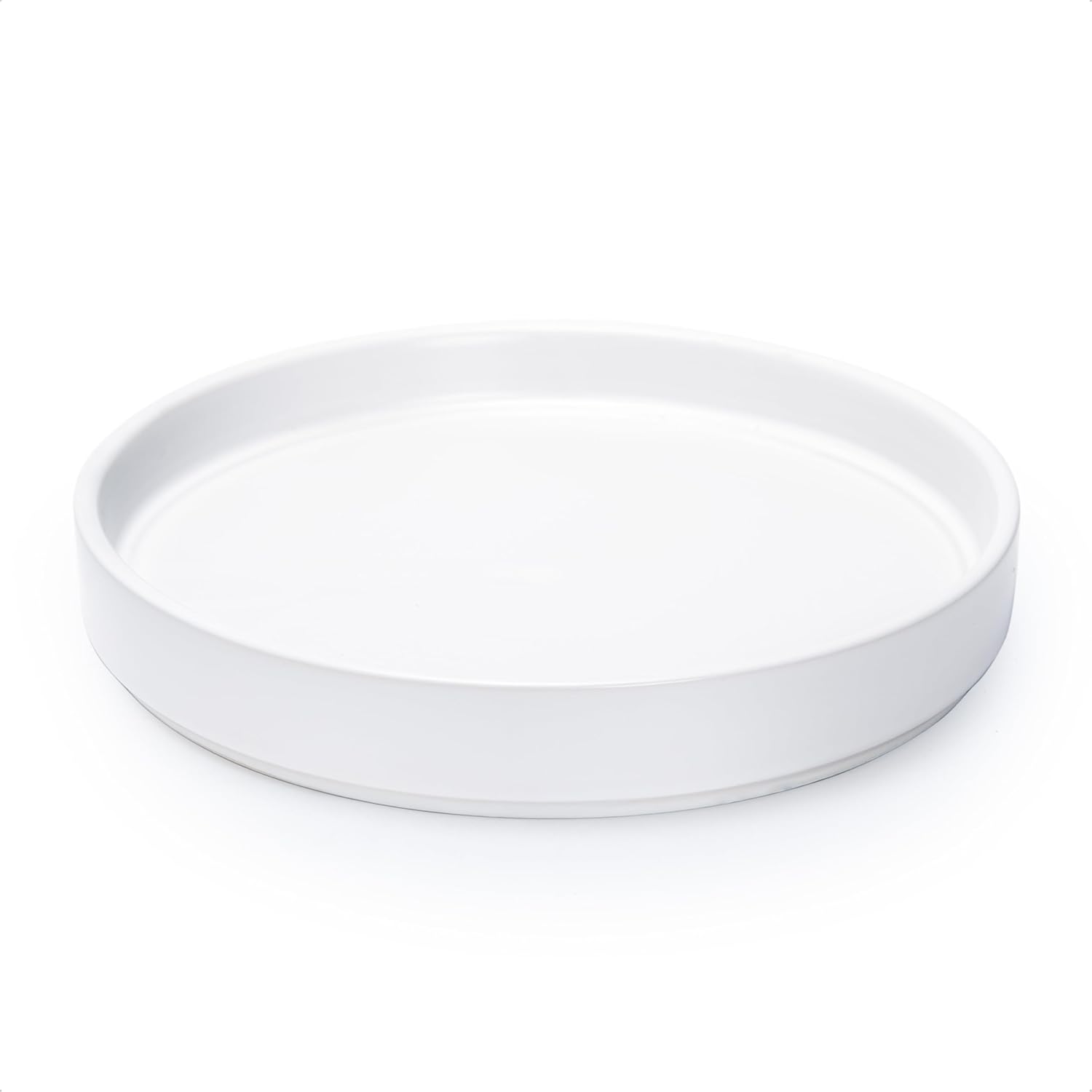 D'vine Dev Modern Round 8.7 Inch Ceramic Plant Pot Saucer, Planter Pot Drainage Tray for Indoor Plants, Matte White, 97-T-A-4