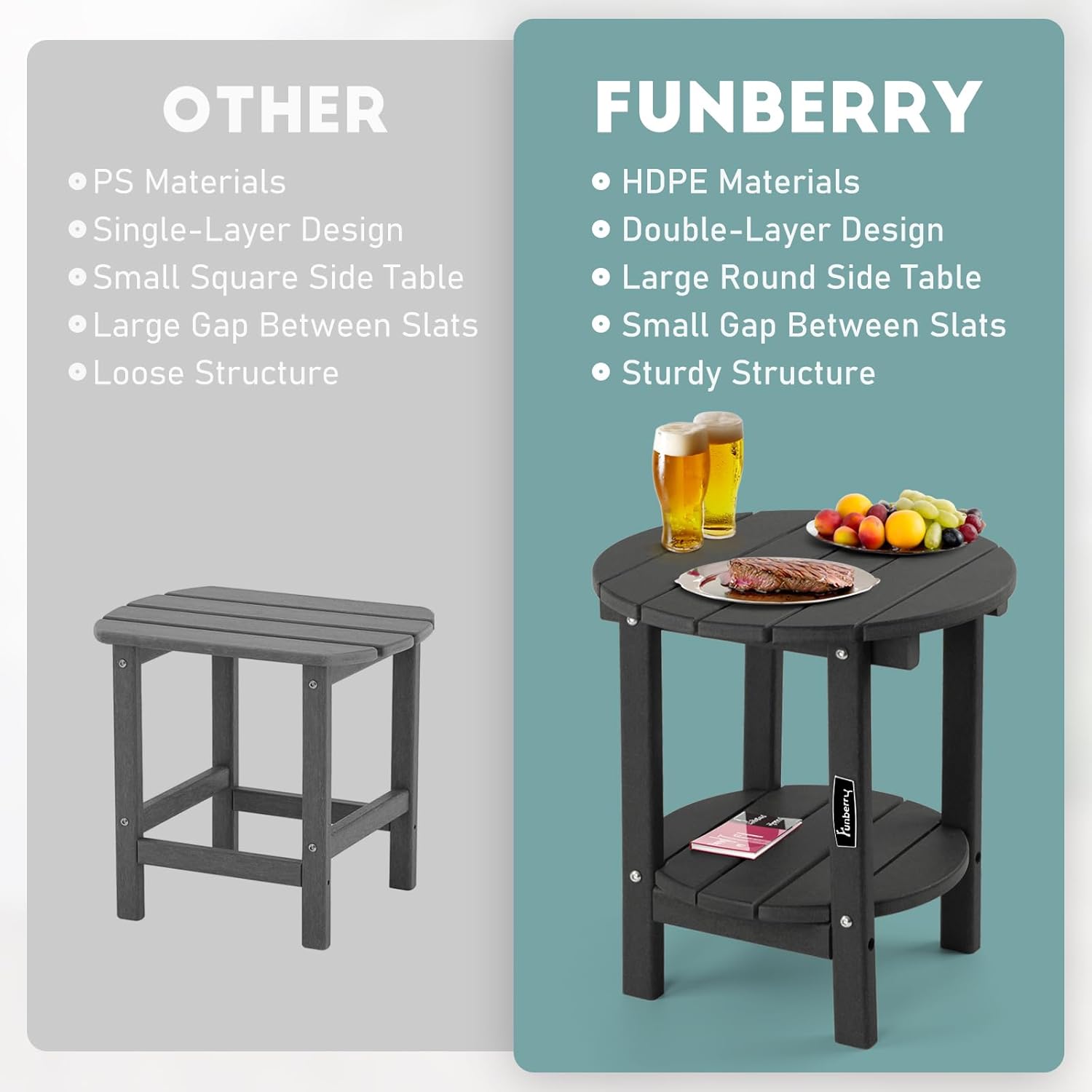 FUNBERRY Outdoor Adirondack Side Table, 2-Tier Patio End Tables, HDPE All Weather for Outside