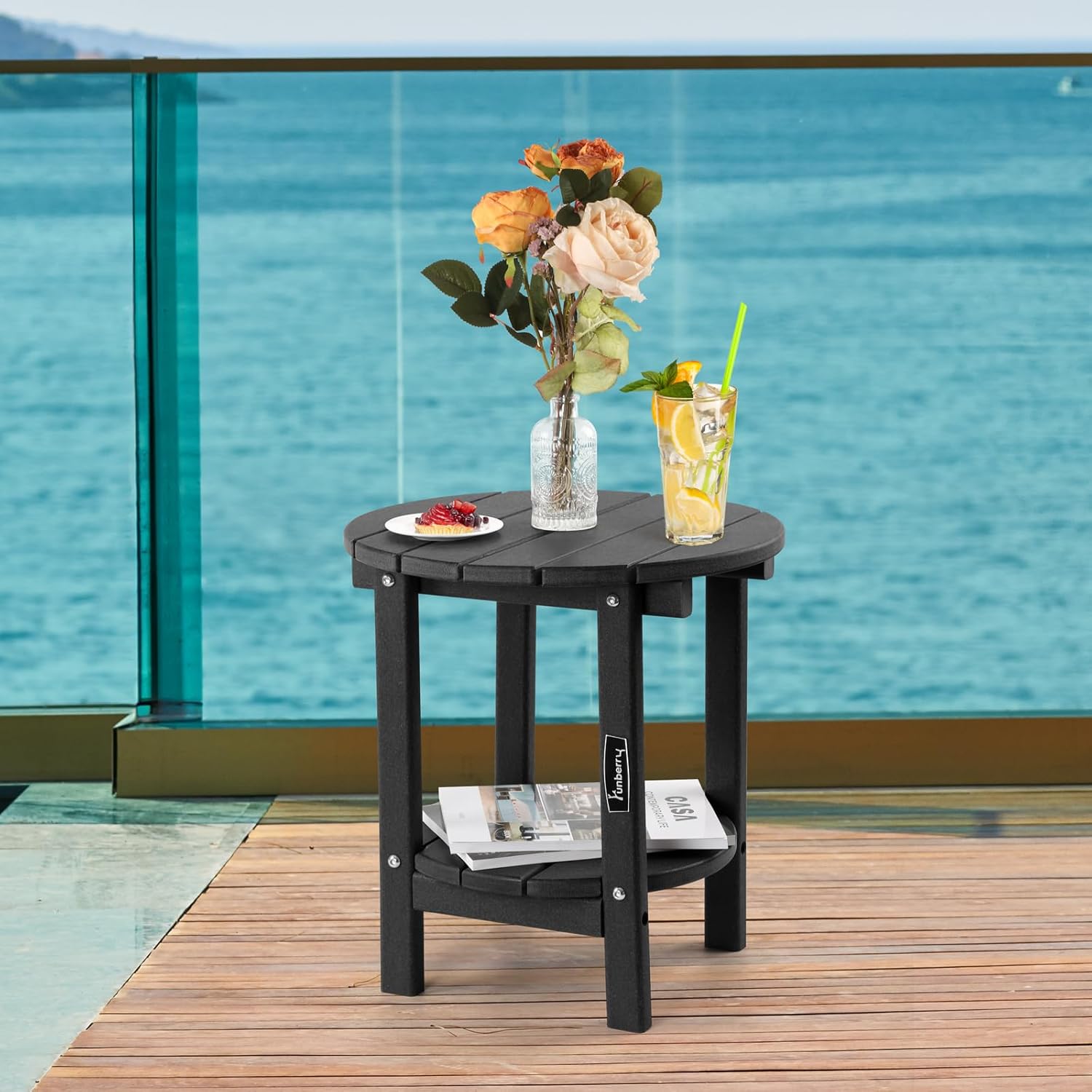 • Double Layers & Smooth Design: The 2-tier design of this outdoor side table provides more storage space for food, drinks, books and other items. The smooth edge design makes this patio table more safe especially for families with children. This patio side table is an ideal companion for Adirondack chairs, Rocking chairs and Chaise Lounge chairs.
