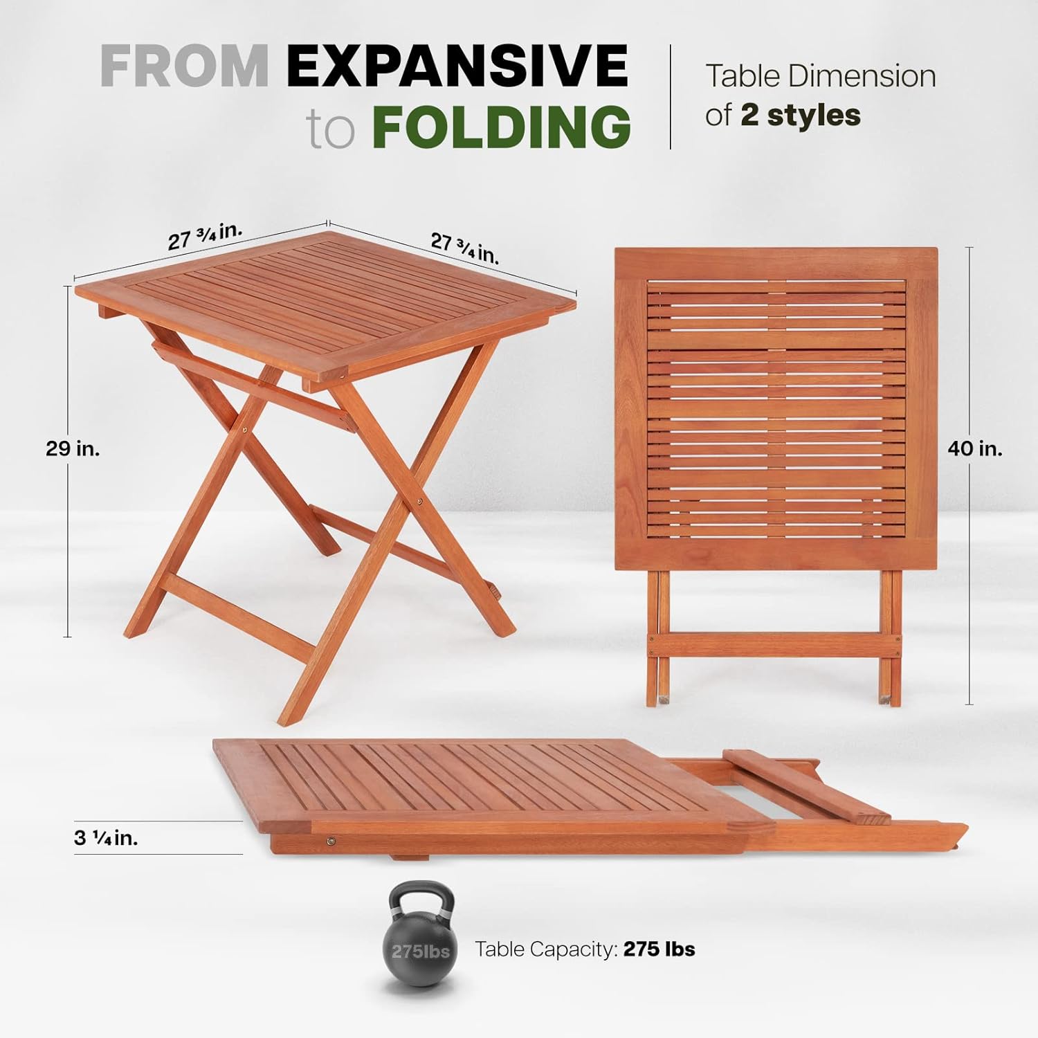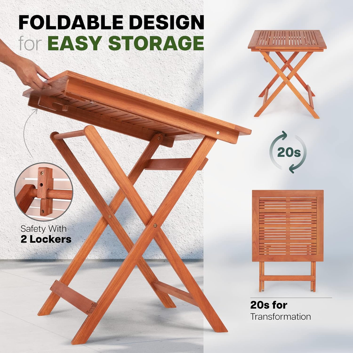 • Idzo Aiden Solid Wood Dining Table Outdoor 27.75x29 Inch, Hold Up to 275lbs, Reliable Outdoor Dining Table for Garden, Backyard, Porch, Patio & Balcony, Eucalyptus Wood Folding Dining Table