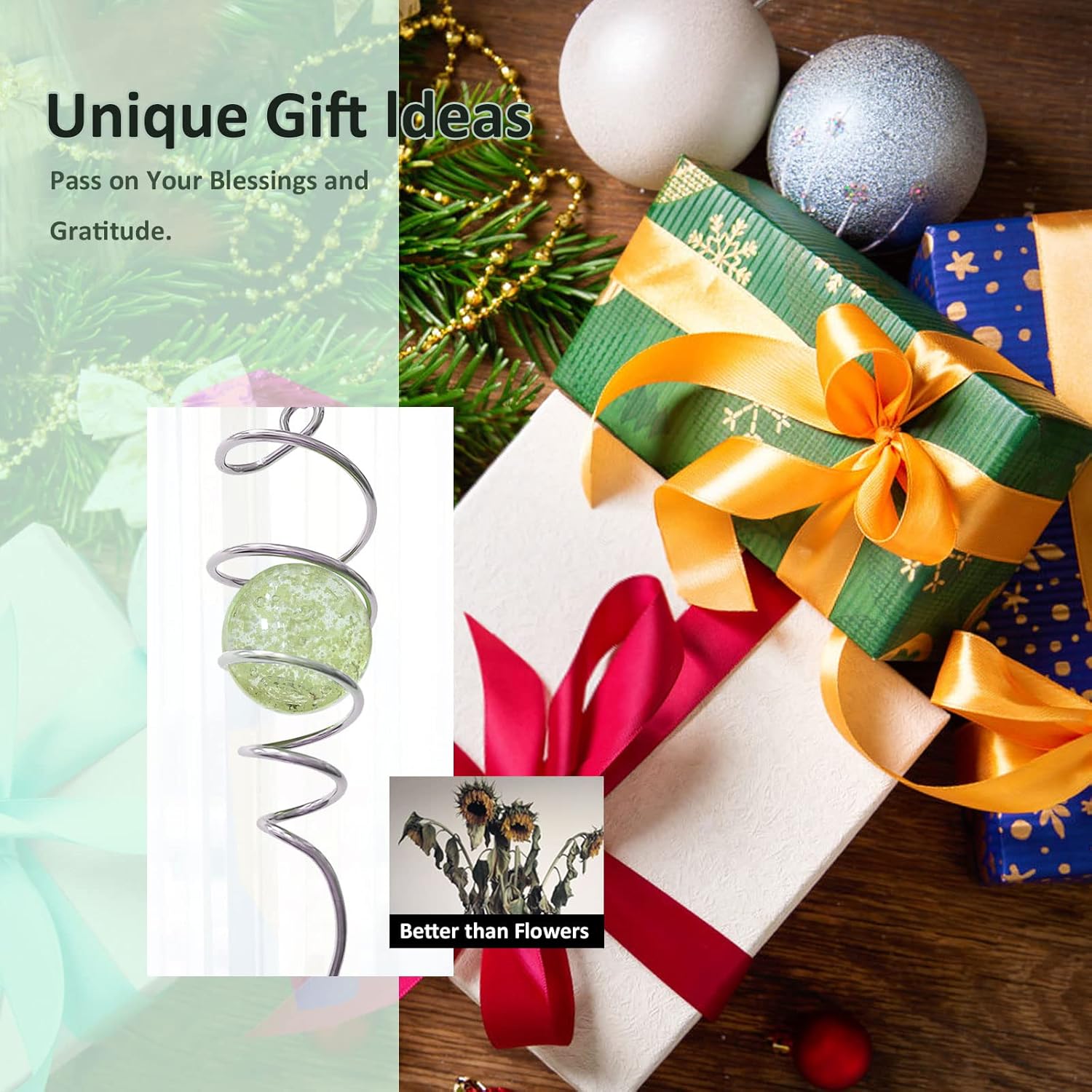 • 【Easy To Position】The Wind Spinner Stabilizer Spiral can't spin by itself ,if you want to make it spin like the video ,need add 1pc motor (not include) ,or combine it with a wind spinner or any rotatable hanging ornament to help it rotate. Come with 1pc 2 inch colored glass orb(not paint), 1pc silver color spiral tail twister,and 1pc swivel hook accessory, ready to hang and enjoy.