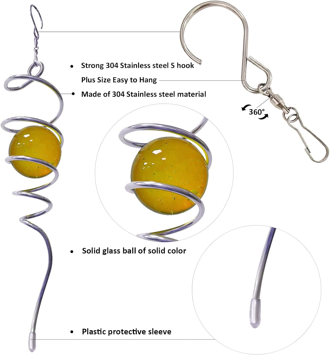 • 【Easy To Position】The wind spinner tail Spiral can't spin by itself ,if you want to make it spin like the video ,need add 1pc motor (not include) ,or combine it with a wind spinner or any rotatable hanging ornament to help it rotate. Come with 1pc 2 inch colored glass orb(not paint), 1pc silver color spiral tail twister,and 1pc swivel hook accessory, ready to hang and enjoy.