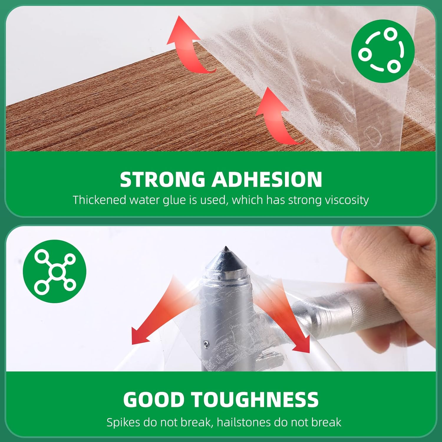 • Premium Quality - Our heavy duty greenhouse plastic tape, made from polyethylene and 6.3 mil plastic sheeting, provides tear resistance, long-lasting hold, and waterproof protection. It is also super sticky, UV-resistant, and low-temperature resistant.