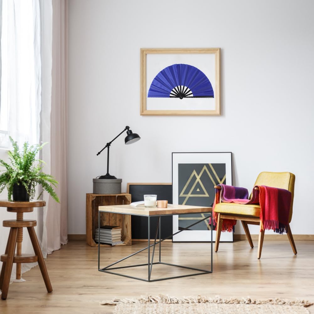 4 Pack Large Folding Hand Fan, Plastic Hand Held Folding Fans Chinese Kung Fu Hand Fan Decorative Folding Fans for Dance, Performance, Festival or Home Decorations(Blue)