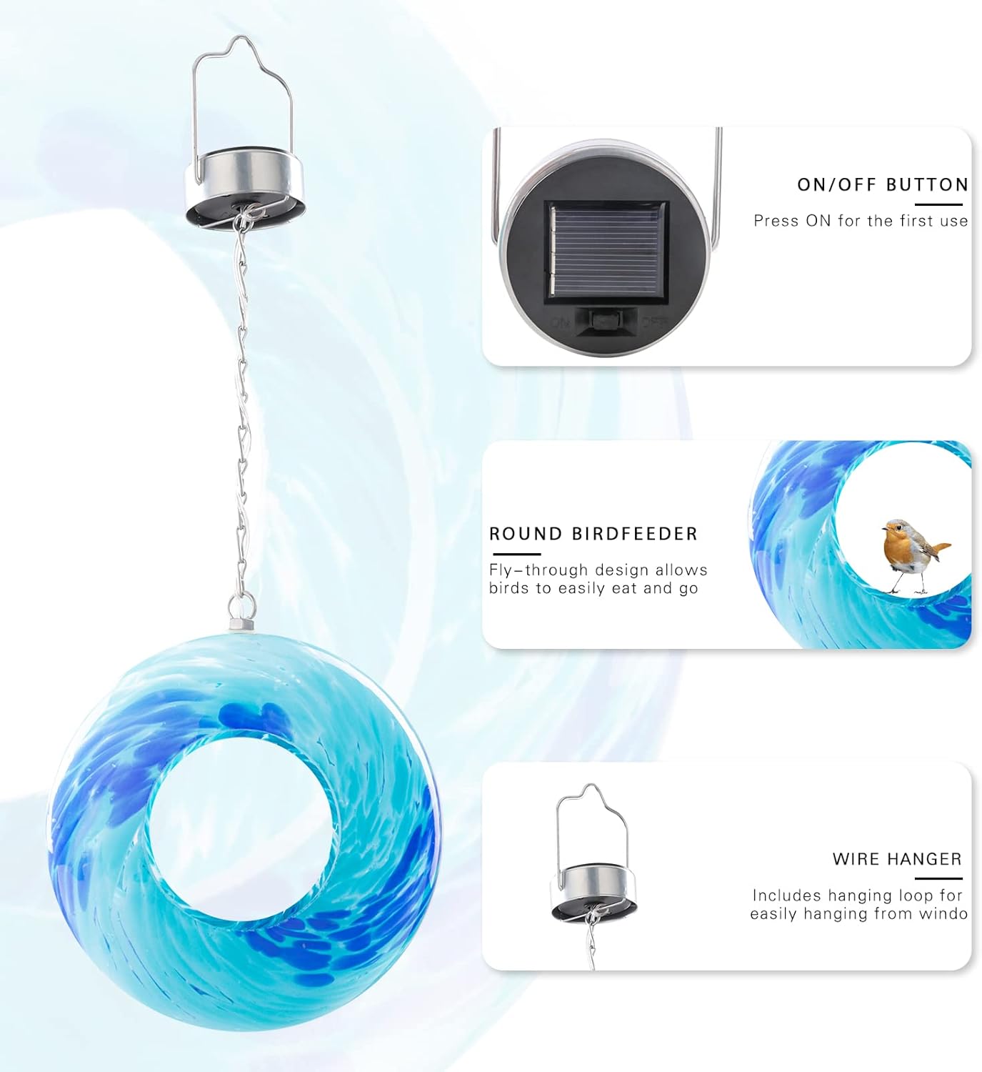 • 【A Perfect Gift Idea】Glass solar bird feeders are an excellent gift for nature lovers; they make a lovely outdoor decoration, and give people an opportunity to observe and photograph birds as they relax in your yard or garden