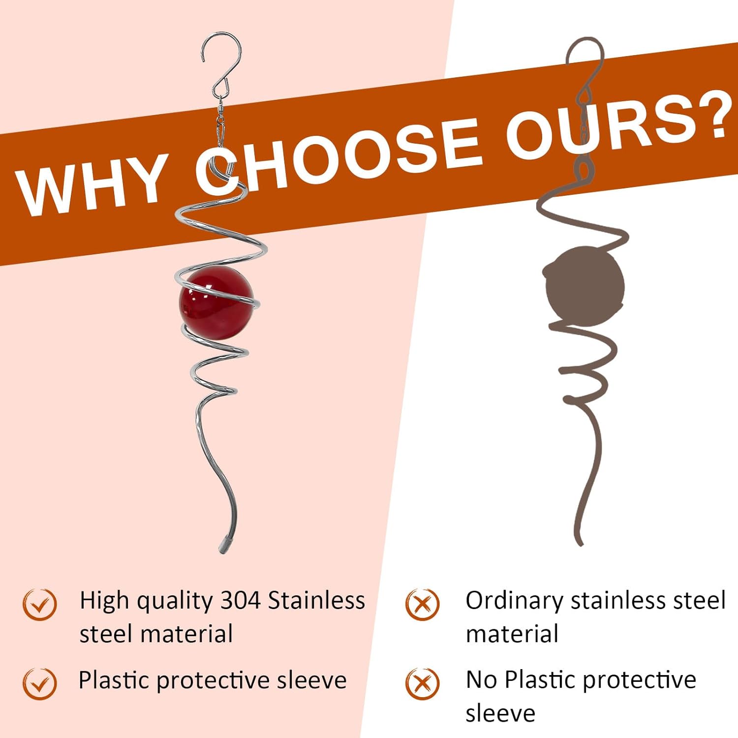 • ✔【High Quality】11inch height spiral tail made of 304 stainless steel wire,the 2inch colored ball made of pure solid color glass material,have good weather resistant,no fading under sunshine.Better quality than iron material with nickle plating and painting color glass ball in the market.Not easy to rust.
