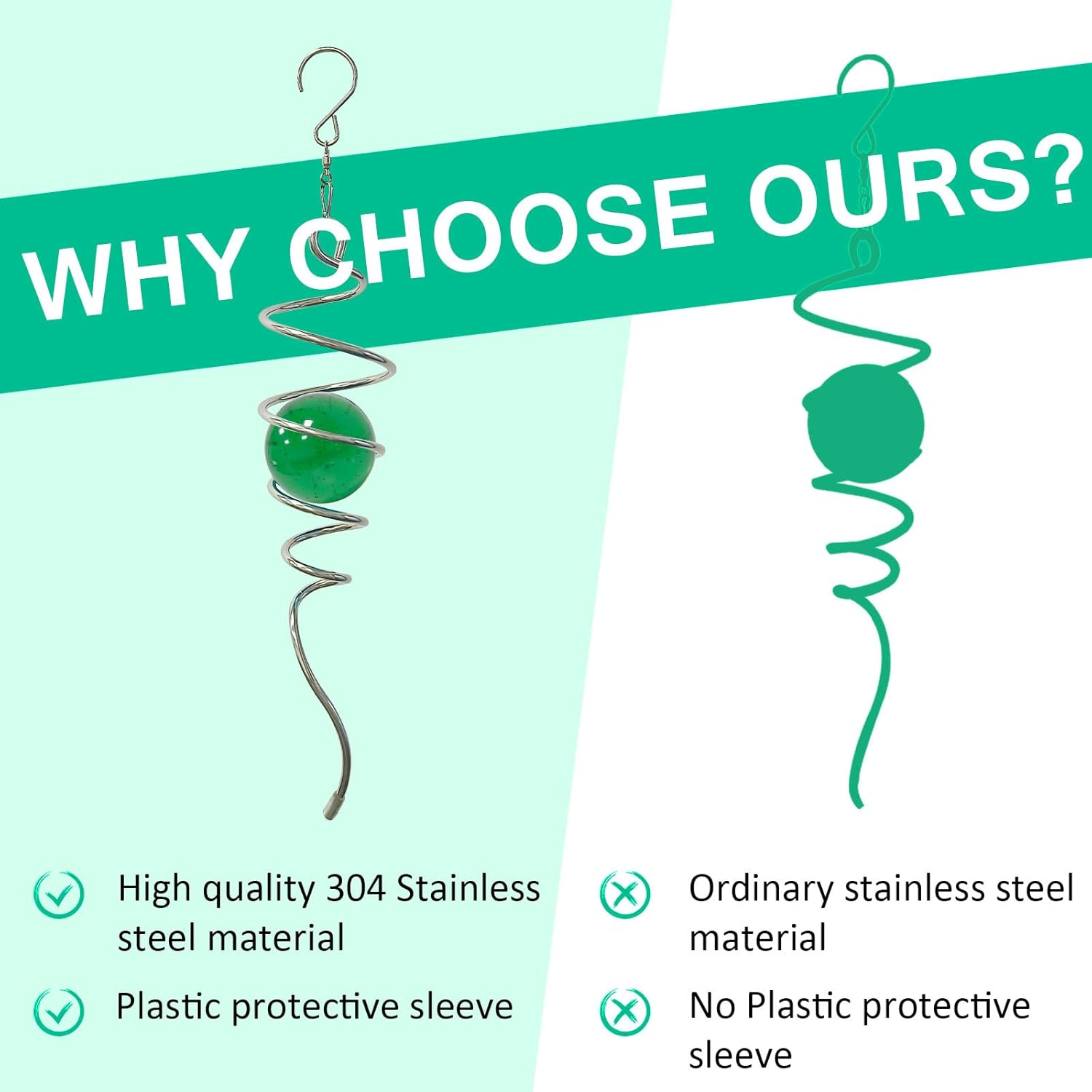 • ✔【Easy to use】The spiral tail wind spinner can't spin by itself ,if you want to make it spin like the video ,need add 1pc motor (not include) ,or combine it with a wind spinner or any rotatable hanging ornament to help it rotate. Come with 1pc 2 inch green glass orb(not paint),1pc silver color spiral tail twister,and 1pc swivel hook accessory, ready to hang and enjoy.