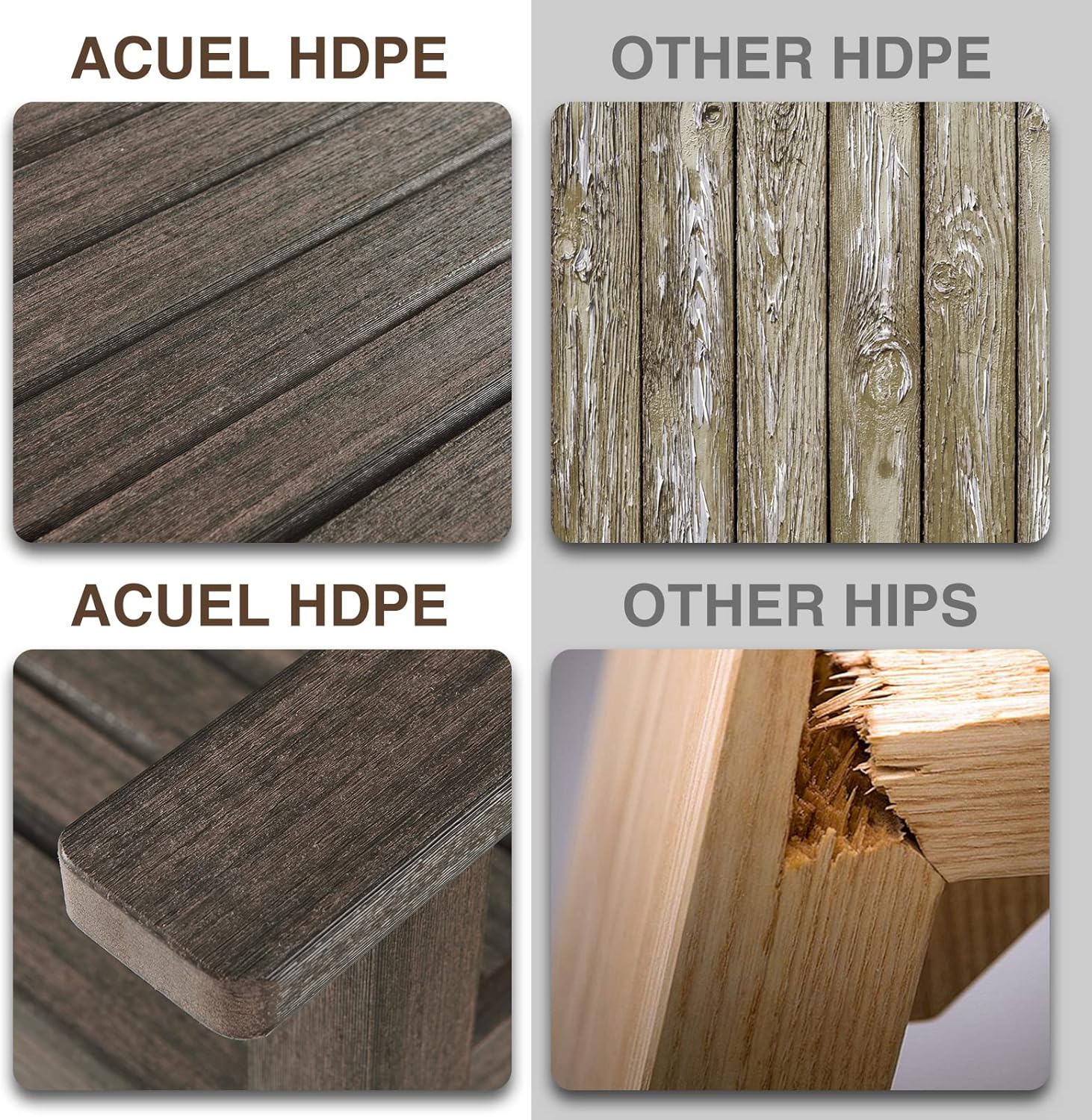 • Durable & Sturdy: Poly Lumber is a tough and dense material, which brings 700 Ibs load capacity to our benches for outside. It's safe and sturdy for 3 people sitting without the worry of flexing and wobbling