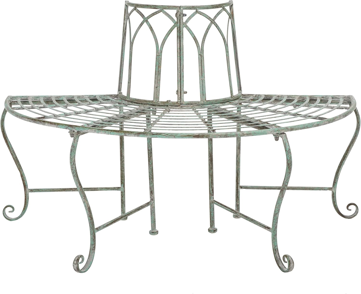SAFAVIEH Outdoor Collection Abia Victorian Antique Dark Green Wrought Iron 50-inch Wide Tree Bench